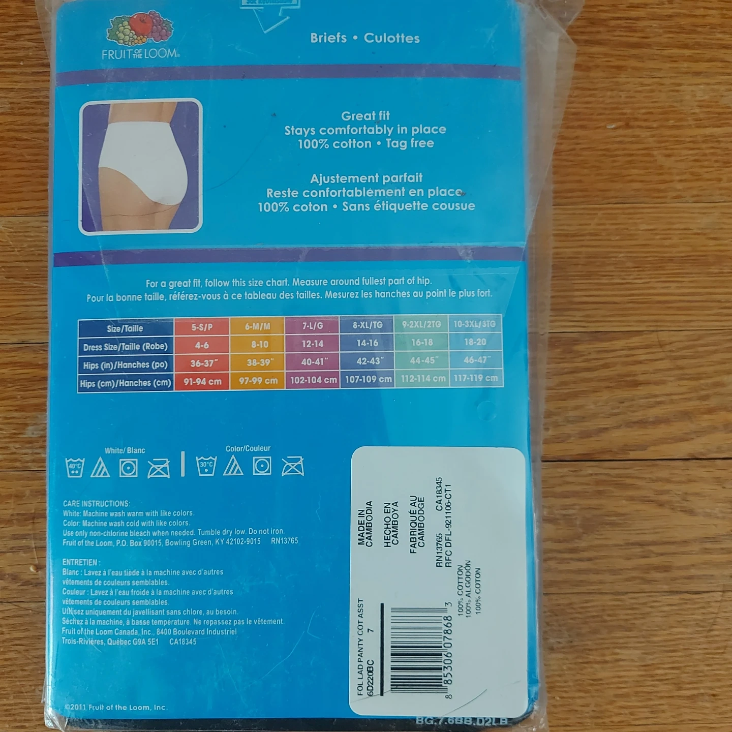 NEW - 3x Fruit of the Loom Women's Briefs - 6 Pack, Size 7 Large