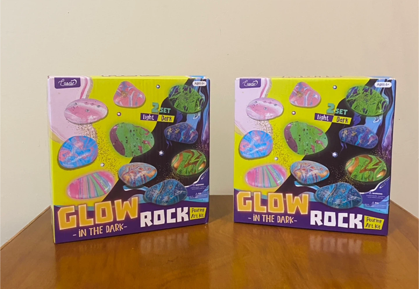 • 2-set kit (Light + Dark glow paints)