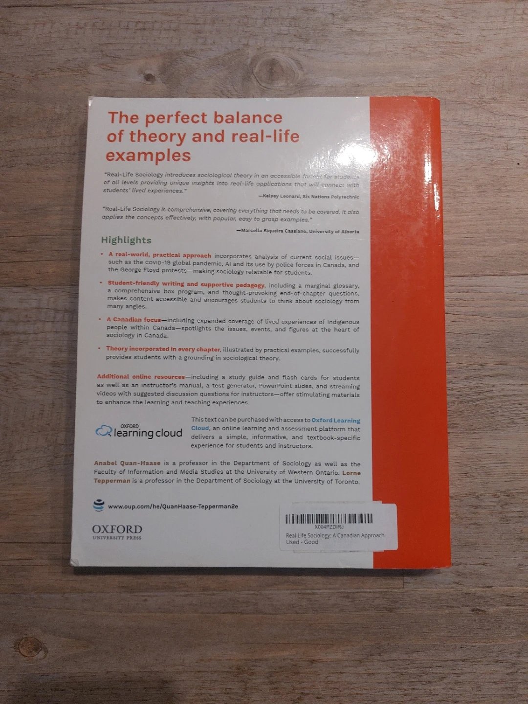 This is the Second Edition of Real-Life Sociology: A Canadian Approach. It's written by Anabel Quan-Haase and Lorne Tepperman. This textbook includes theory incorporated in every chapter.