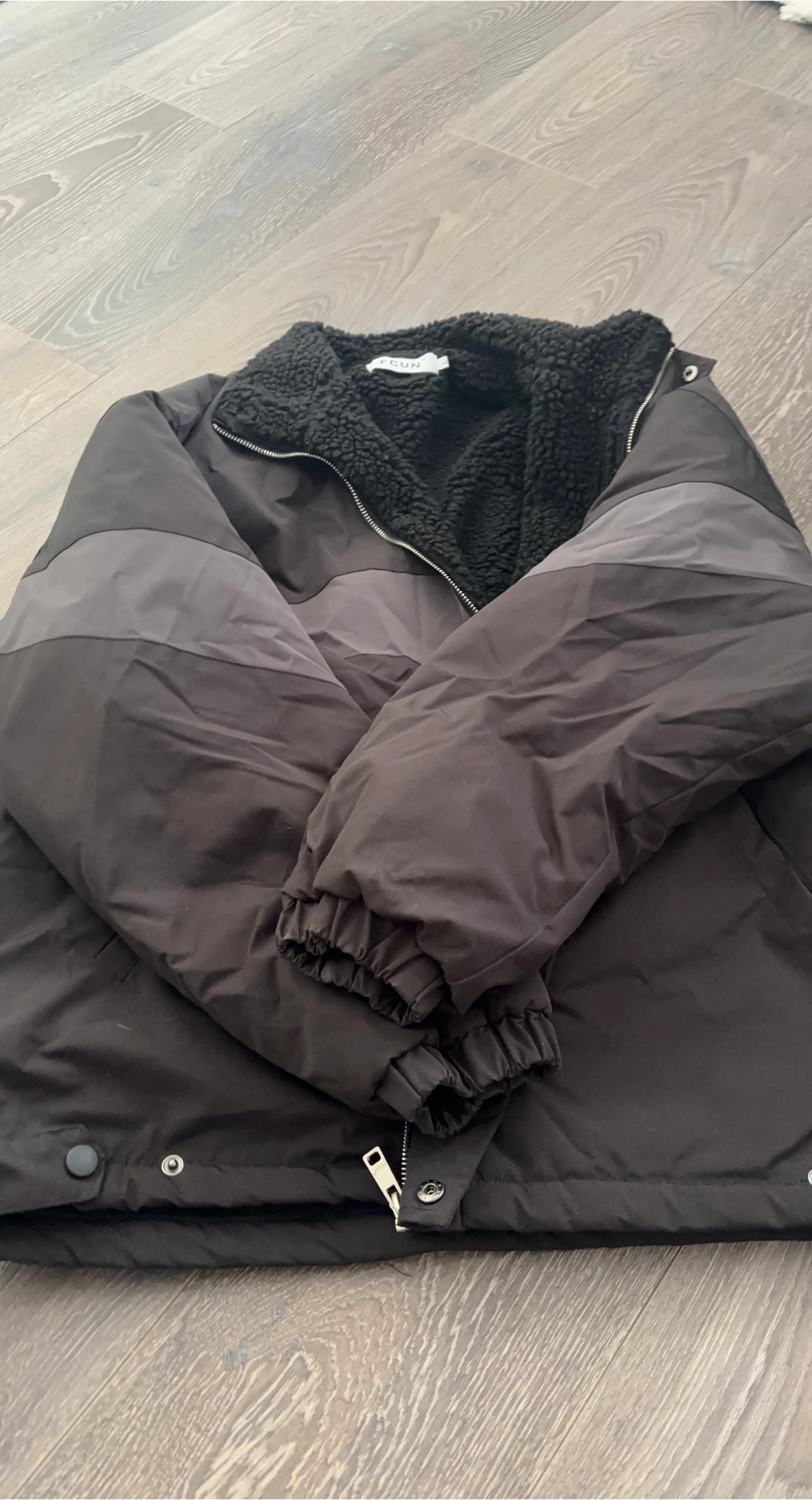 26Selling a FCUN black puffer jacket. It's in great condition and perfect for the cooler weather. The jacket features a cozy sherpa lining and a stylish design. Feel free to reach out if you're interested!