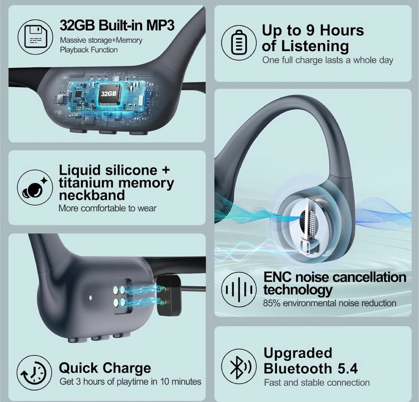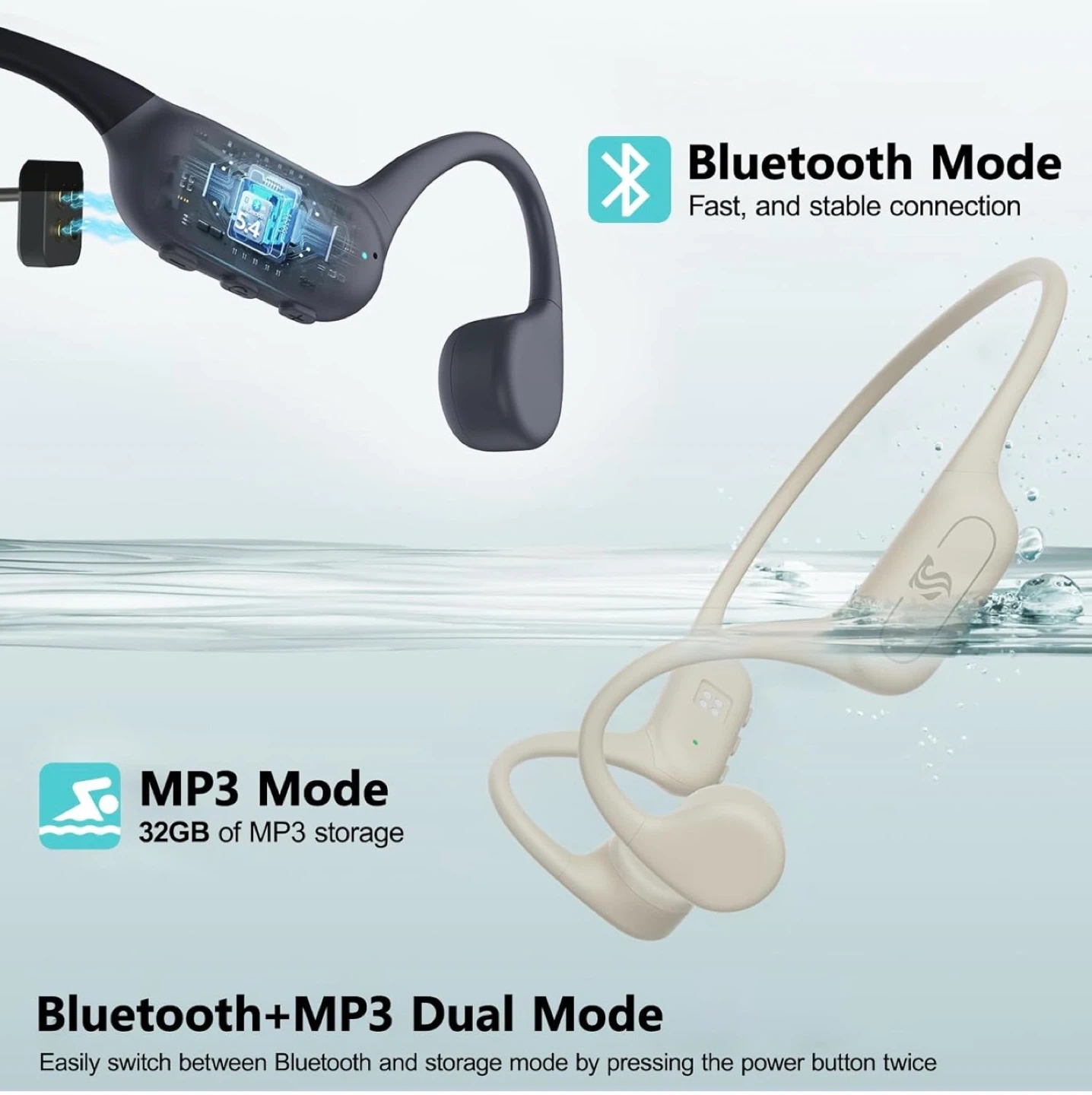 Bone Conduction Headphones - Waterproof Bluetooth 5.4 MP3 Player