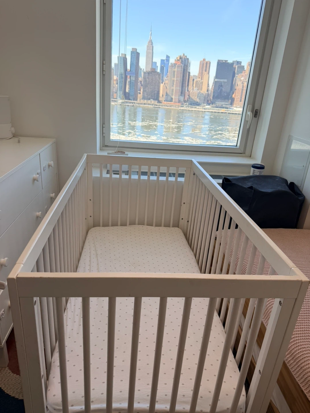 White GAP Baby Crib with Mattress and Fitted Sheet