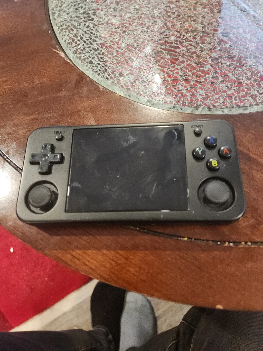 This is an Anbernic RG35XX H handheld gaming console. It features a Li-Po battery. This device is great for on-the-go entertainment!