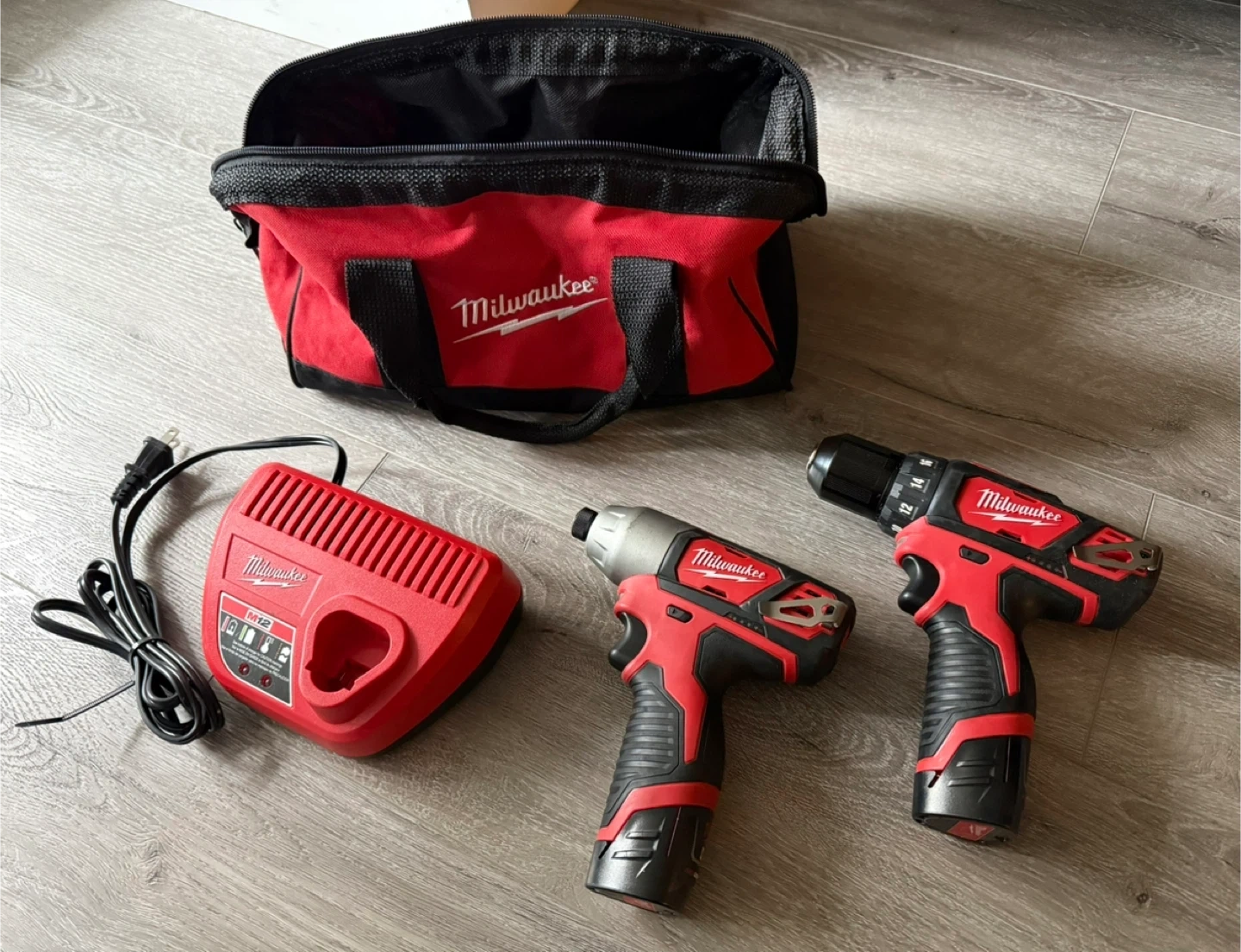 In addition to the two M12™ power tools, the combo kit includes two cordless M12™ REDLITHIUM™ batteries, an M12™ 30-minute charger, and a contractor bag.