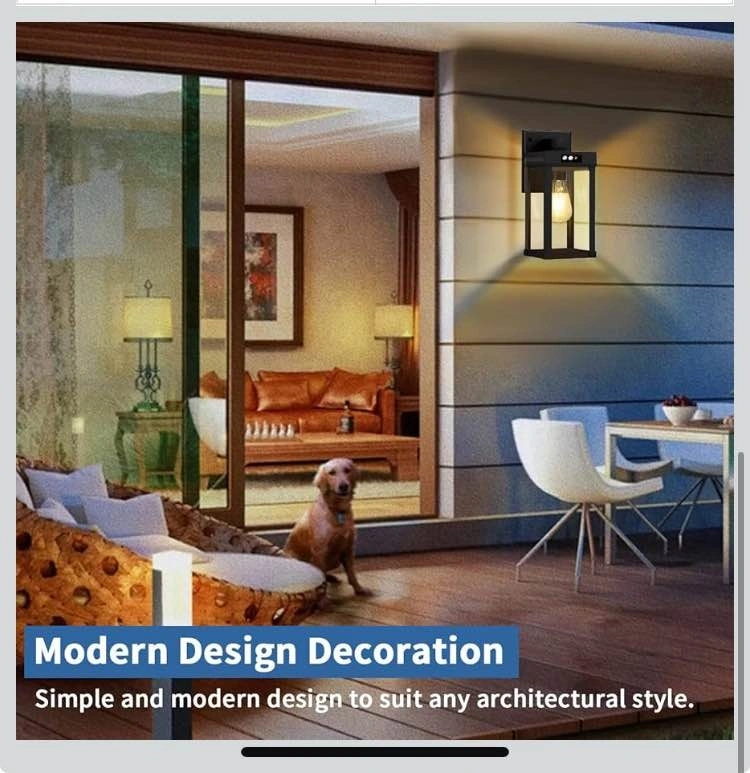 Solar wall lights outdoor with 3 lighting modes and motion sensor. Comes with 2 bulbs. Waterproof solar sconce, lantern light fixture for garage, porch, shed, yard, or front door.