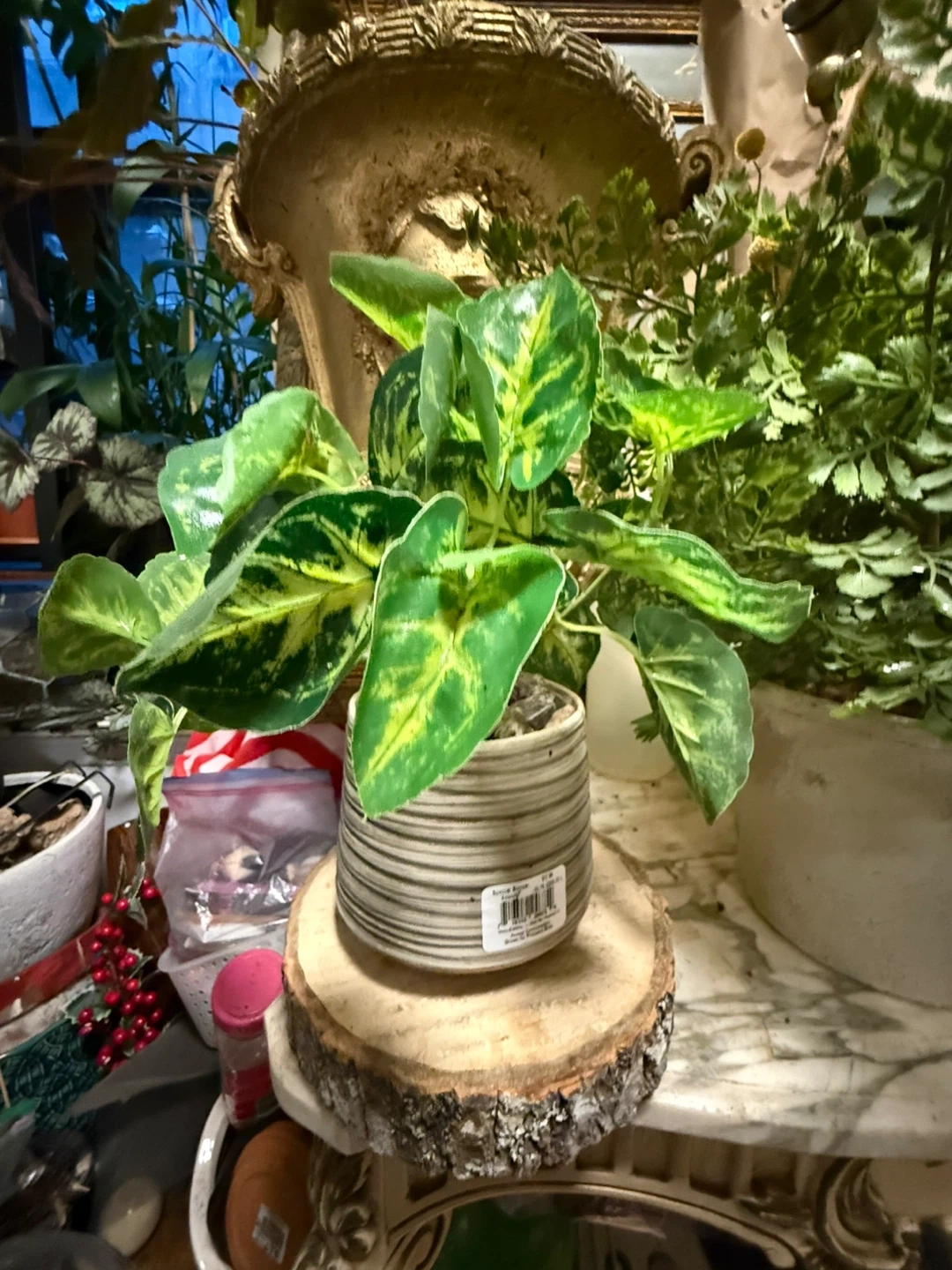 This artificial Monstera plant features realistic green leaves and comes in a simple white pot. It's a low-maintenance way to add greenery to any room. The pot is approximately 6 inches tall. 3for$25 or $10 each