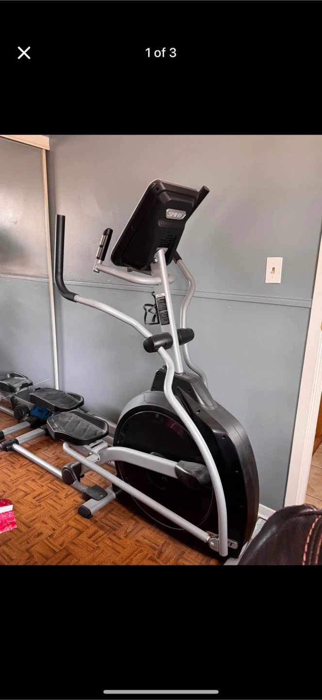 Spirit XE195 elliptical machine for home workouts. It has multiple program options and adjustable resistance levels. This machine is great for cardiovascular fitness at home!