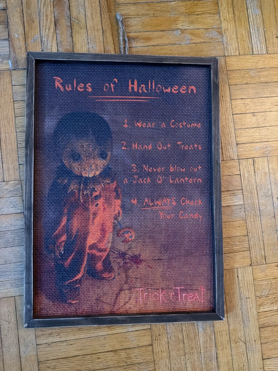 Cute framed sign with the rules of Halloween! It says: