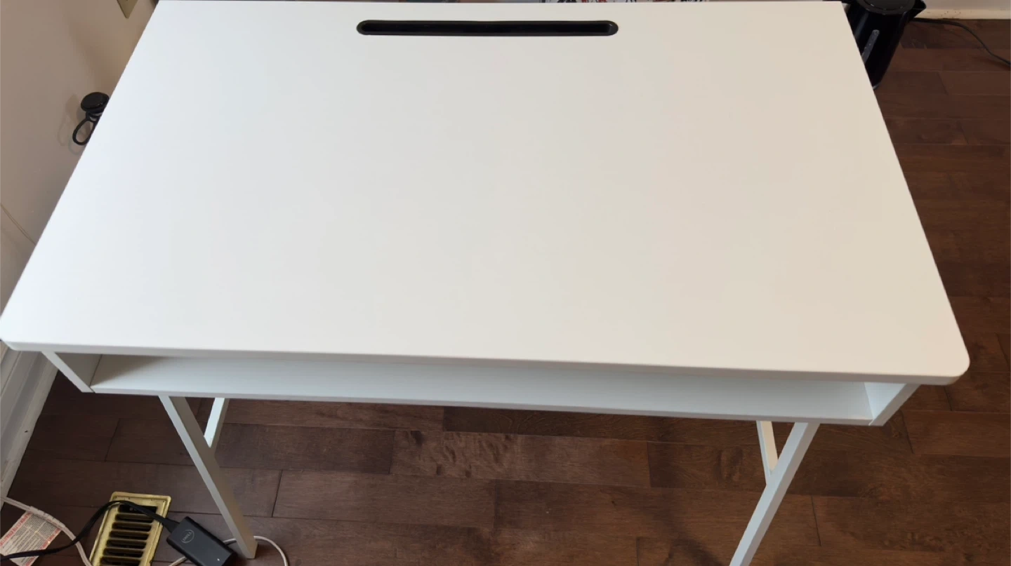 Selling a modern white work desk in very good condition. Perfect for home office, students, or small spaces.