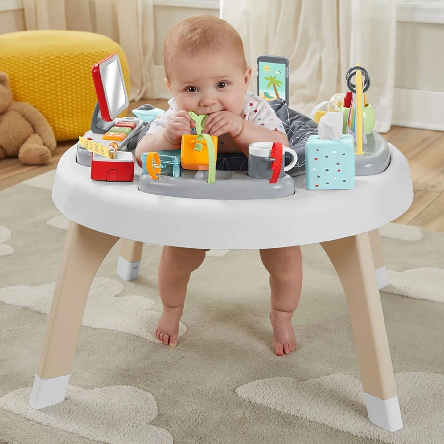 The baby entertainer is great for infants, with 360 degrees of opportunities for fun.