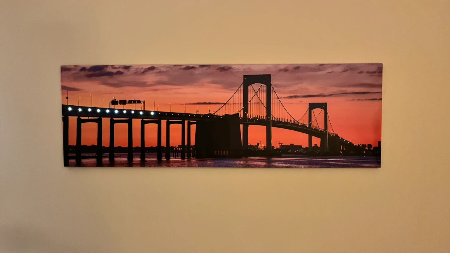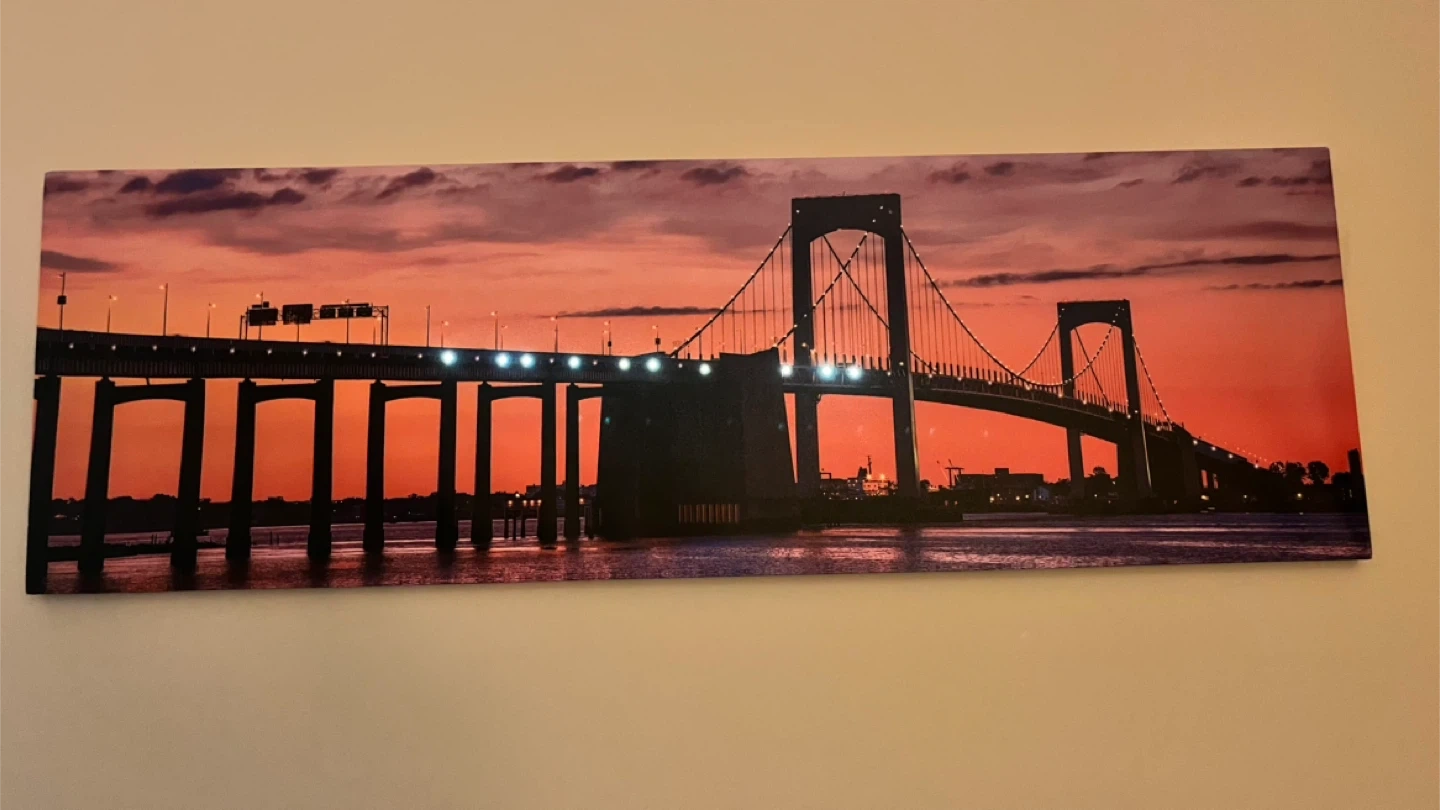 Large panoramic bridge wall art with built-in LED lights.