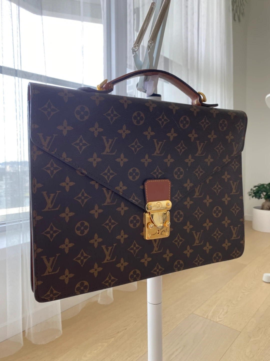 document case. Features a brown leather interior with a zippered compartment and a secure clasp closure. A stylish and practical accessory for business or travel. Size 35*26cm