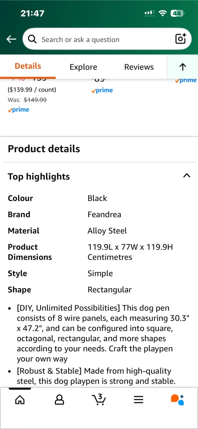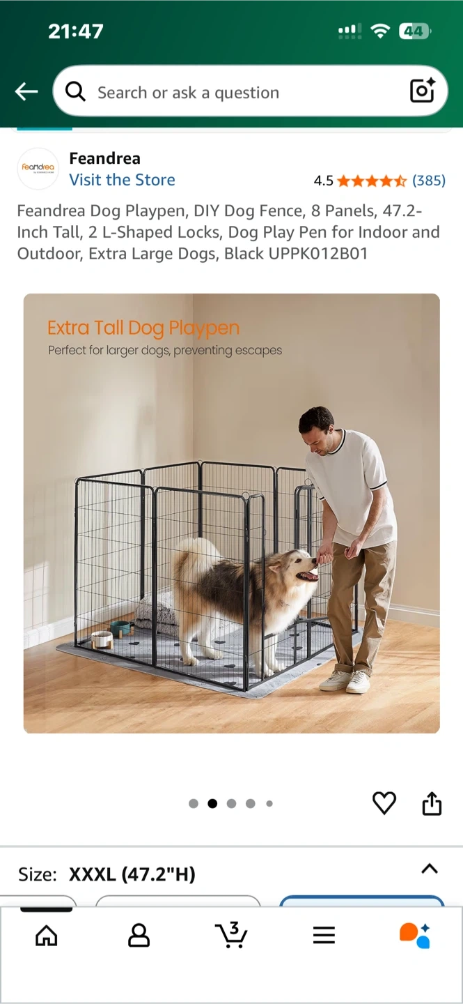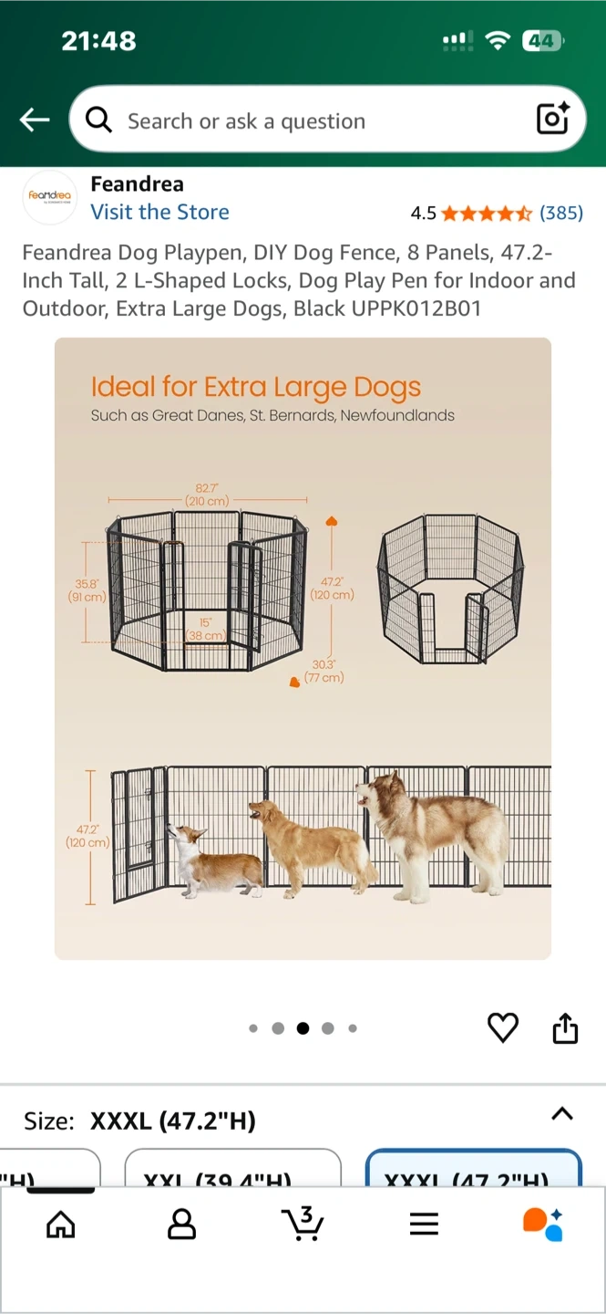 10This Feandrea dog playpen is perfect for your extra large dogs! It's a DIY dog fence with 8 panels, each measuring 47.2 inches tall. The playpen also comes with 2 L-shaped locks. It's suitable for both indoor and outdoor use. The playpen is made from high-quality alloy steel and can be configured into square, octagonal, rectangular, and more shapes according to your needs! Used for a short time only, door bite by the dog. Costed $220 on amazon
