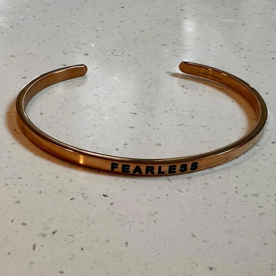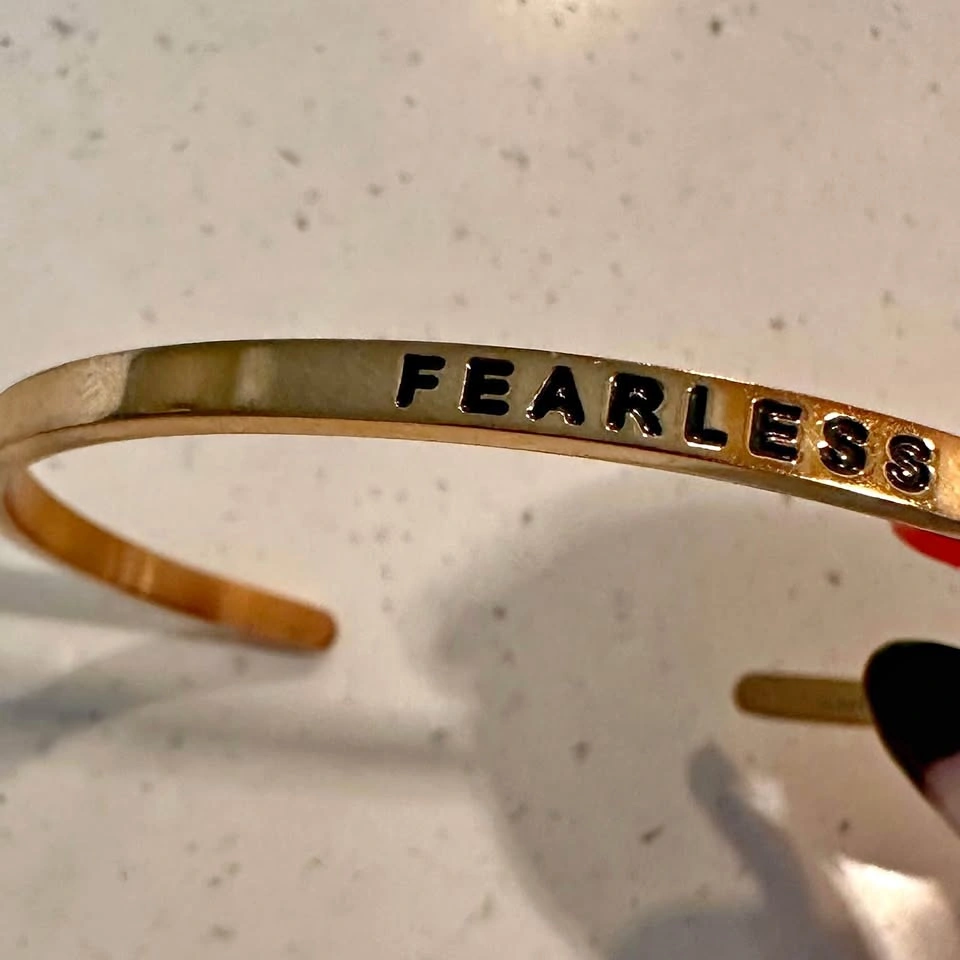 Pick up in Niagara Falls ON. Marked ‘mantraband’ ‘FEARLESS’ Dipped in 18K gold. In great condition. Worn about twice. Fully adjustable, one size fits most. Stainless steel. Lead-free, nickel free, hypoallergenic, tarnish resistant. Gold & rose gold bracelets are 18K gold dipped. Dainty and delicate but durable. Lovely item to invest in to always keep a reminder close of how resilient, ambitious, determined and fearless you are. A great token of love and recognition to someone you love who you feel endlessly proud of. Let me know if you're interested!