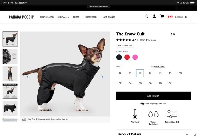 Canada Pooch Snow Suit - Size 12