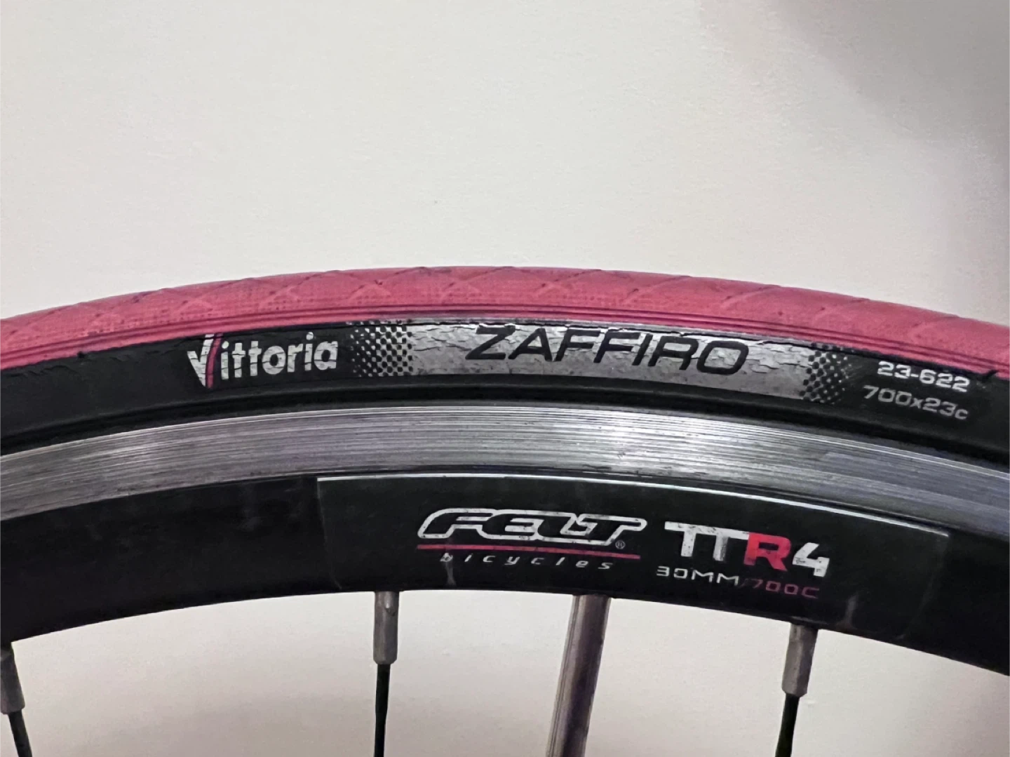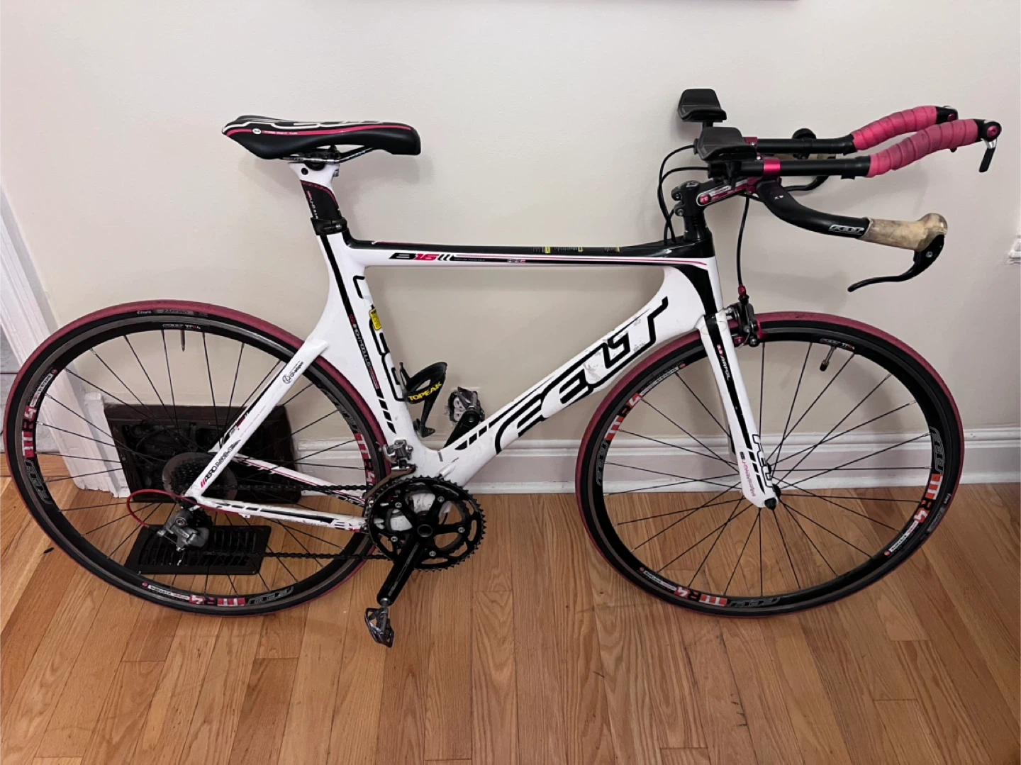 10Selling a Felt B12 triathlon bike. The frame size appears to be around 54cm based on the images. It shows some signs of use, but is still in good condition for hitting the road or your next triathlon!