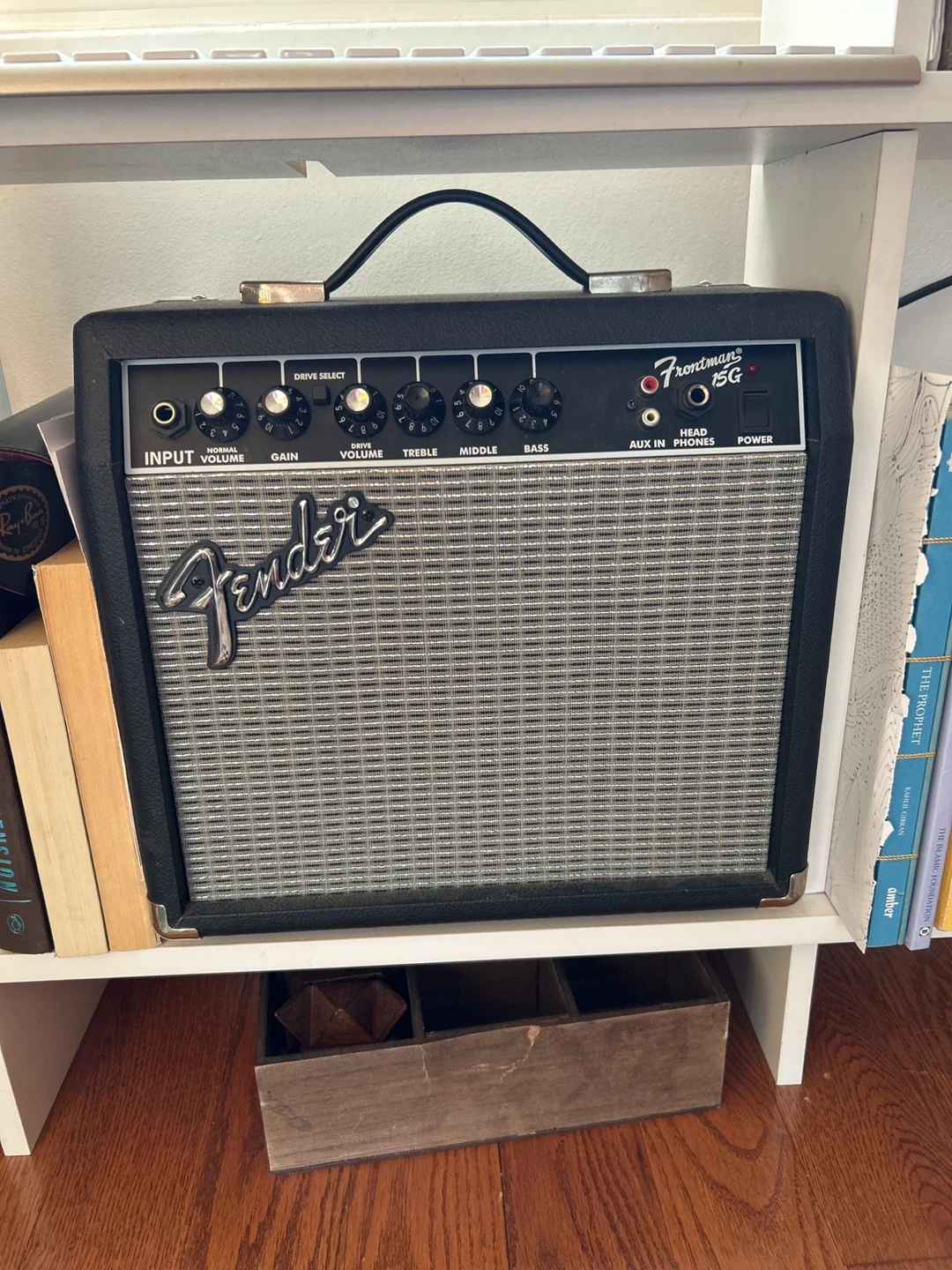 Selling a Fender Frontman 15G guitar amplifier. It's in great shape and ready to rock! Perfect for practice or small gigs.