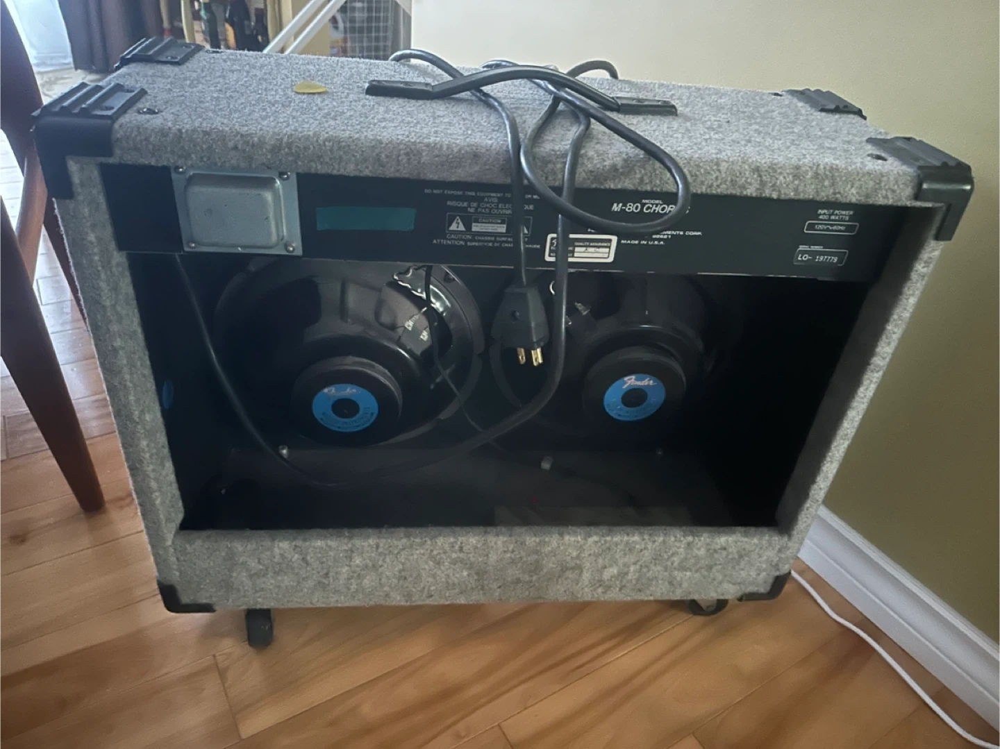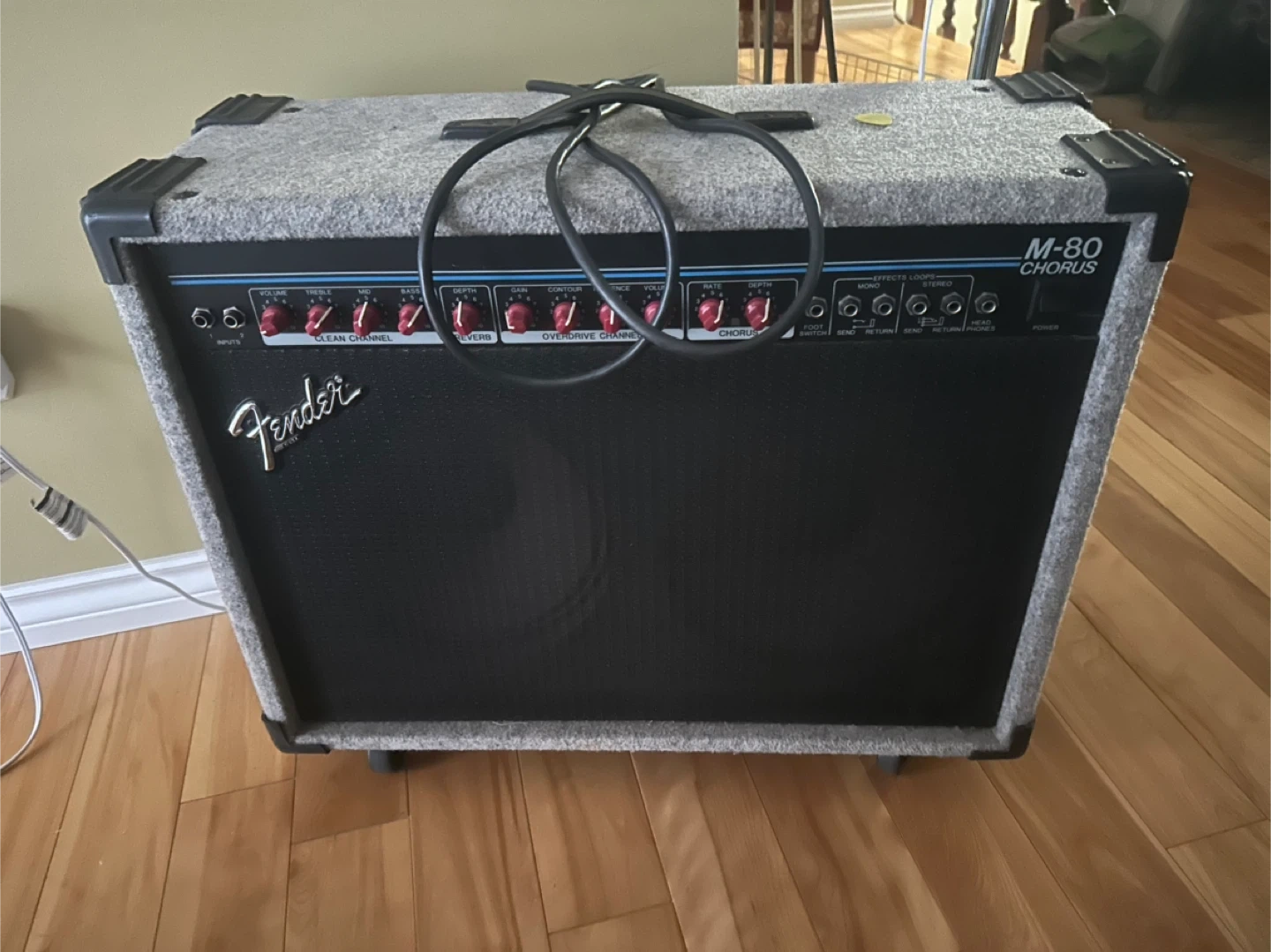 10Fender M-80 Chorus 2-Channel 2 x 65-Watt 2x12" Stereo Solid State Guitar Combo 1990 - 1994 Selling a Fender M-80 Chorus guitar amplifier. It's in good condition and ready to rock! This amp delivers classic Fender tones with a built-in chorus effect, perfect for adding depth and dimension to your sound
