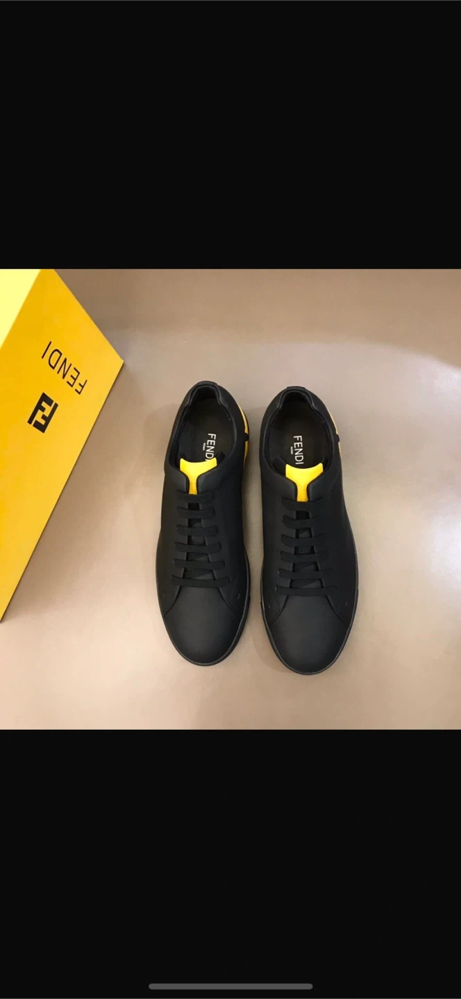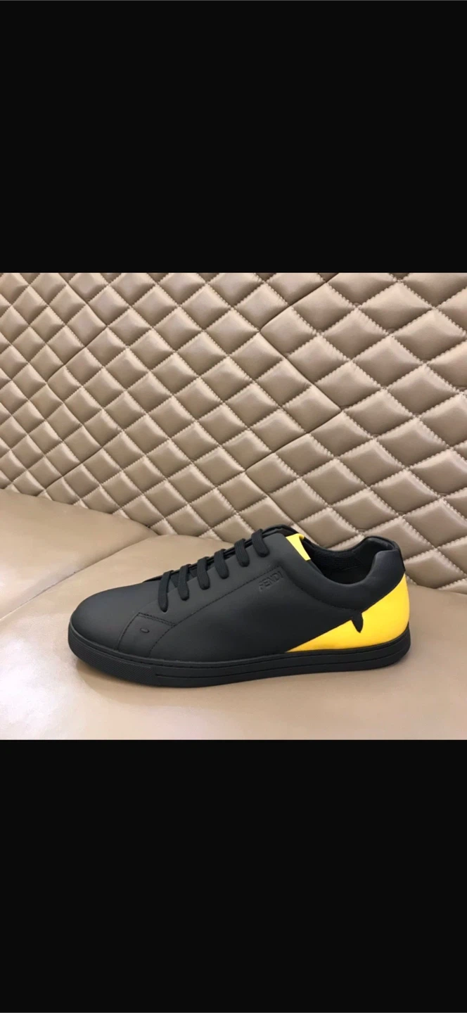 10These Fendi Monster sneakers. They feature a sleek black design with vibrant yellow accents.