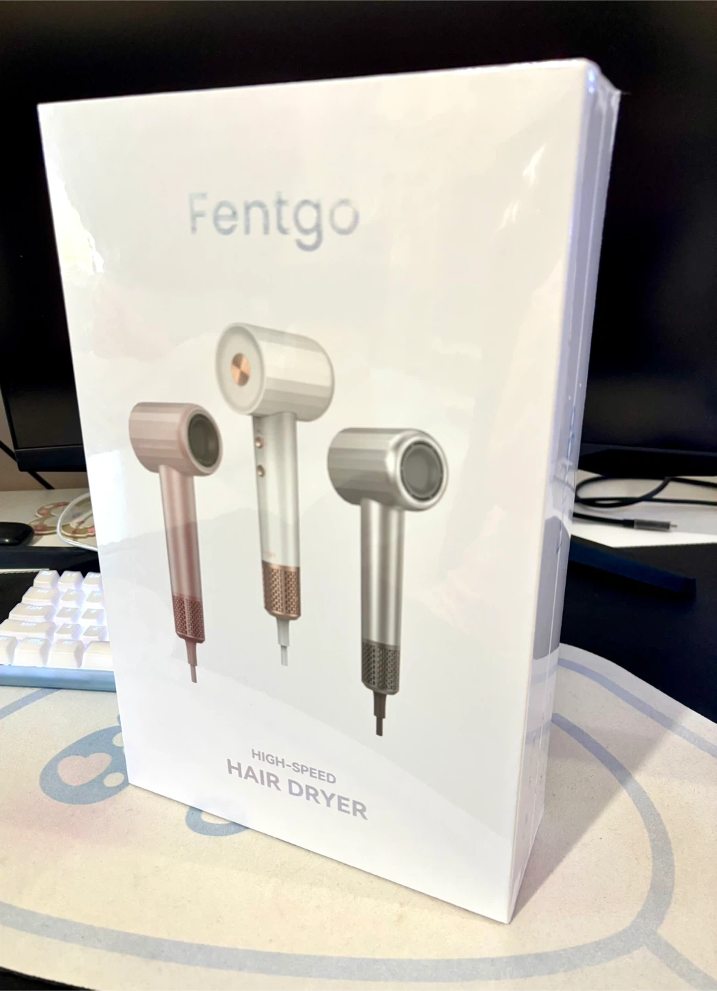 New - Sealed Fentgo High Speed Ionic Hair Dryer with Diffuser, Professional Blow Dryer 110,000 RPM Brushless Motor for Fast Drying, 1500W 4Temps /2Speeds, Thermo-Control Hairdryer for Women Home Travel (White)