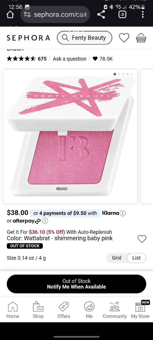 Fenty Beauty Suede Powder Blush Wattabrat The size is 0.14 oz / 4 g. Originally bought for $38 plus tax, asking $35