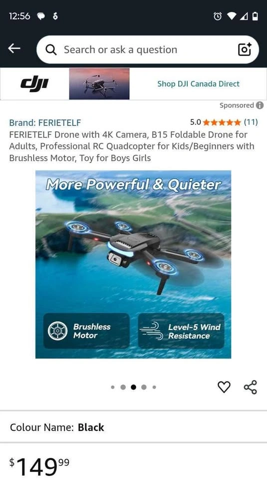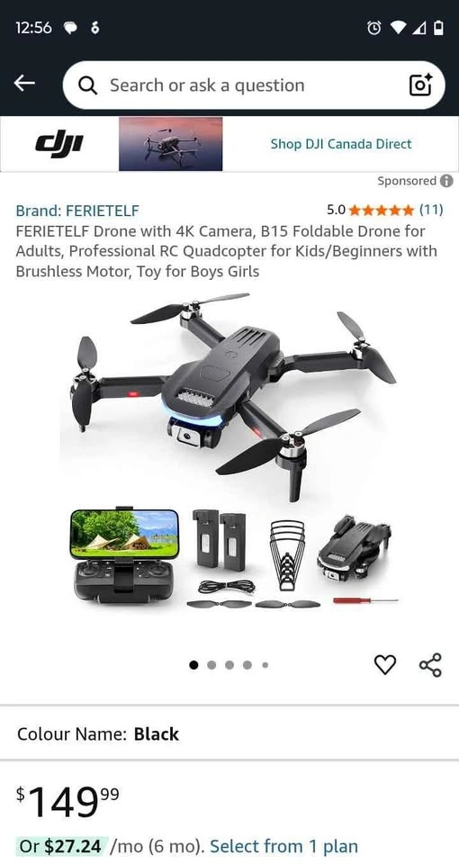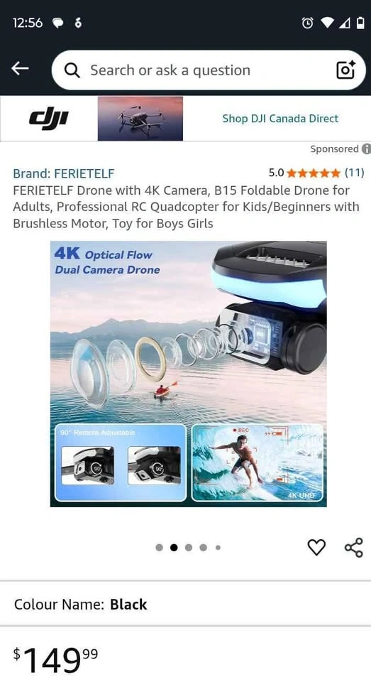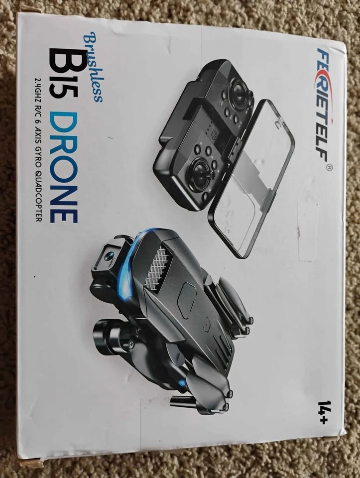 10For sale: FERIETELF B15 Foldable Drone with 4K Camera. Originally purchased for CAD 149 + tax, now available for CAD 90. Brand new condition, ideal for drone enthusiasts.