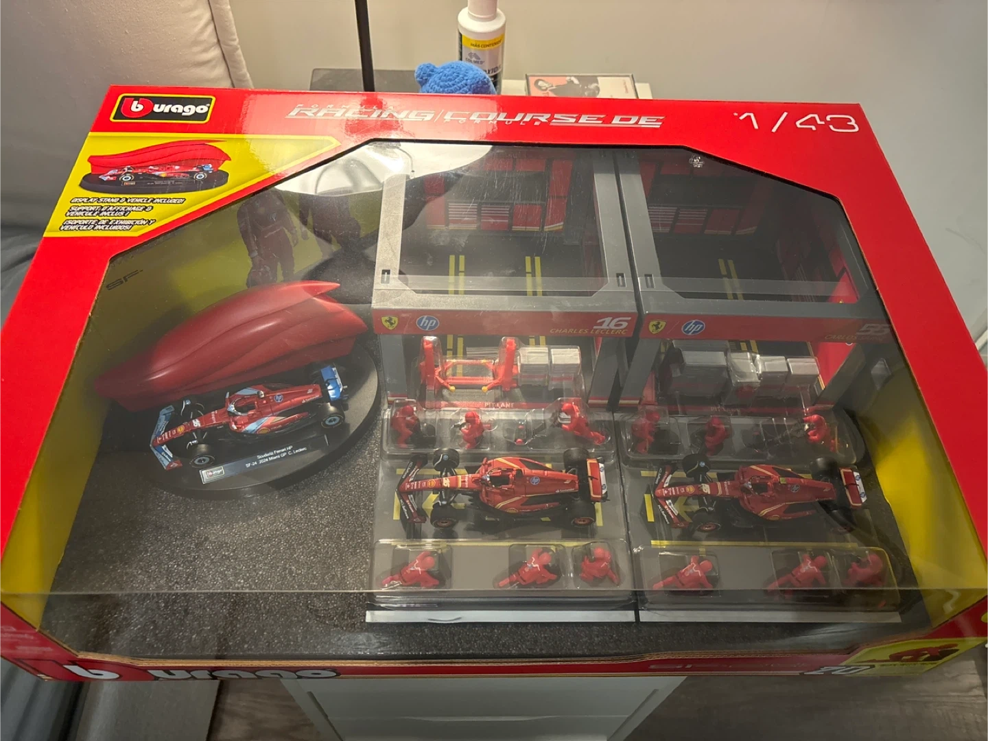 Selling a Bburago Racing Course De 1/43 scale Ferrari set! It includes a display stand and vehicle, featuring Charles Leclerc's #16 car. Perfect for any Ferrari or F1 fan!