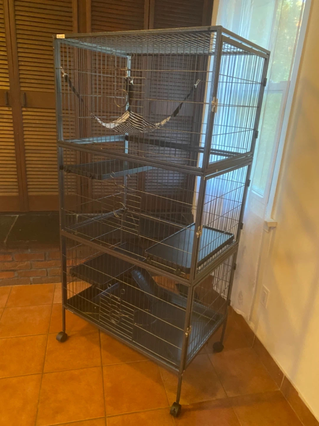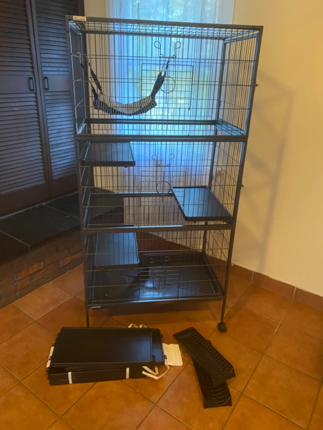 Selling a Ferret Nation cage in great condition! It comes with multiple levels, a hammock, and some additional accessories. It's a spacious and secure home for your furry friend. The cage is easy to clean and assemble. Perfect for ferrets, rats, or other small animals!
