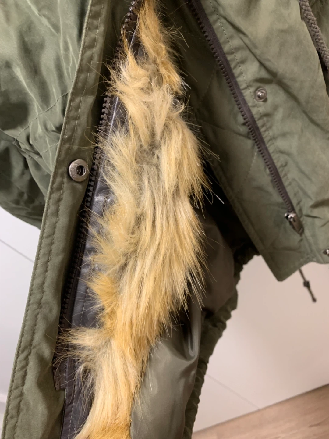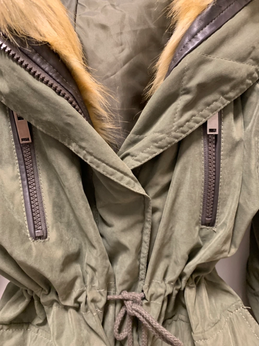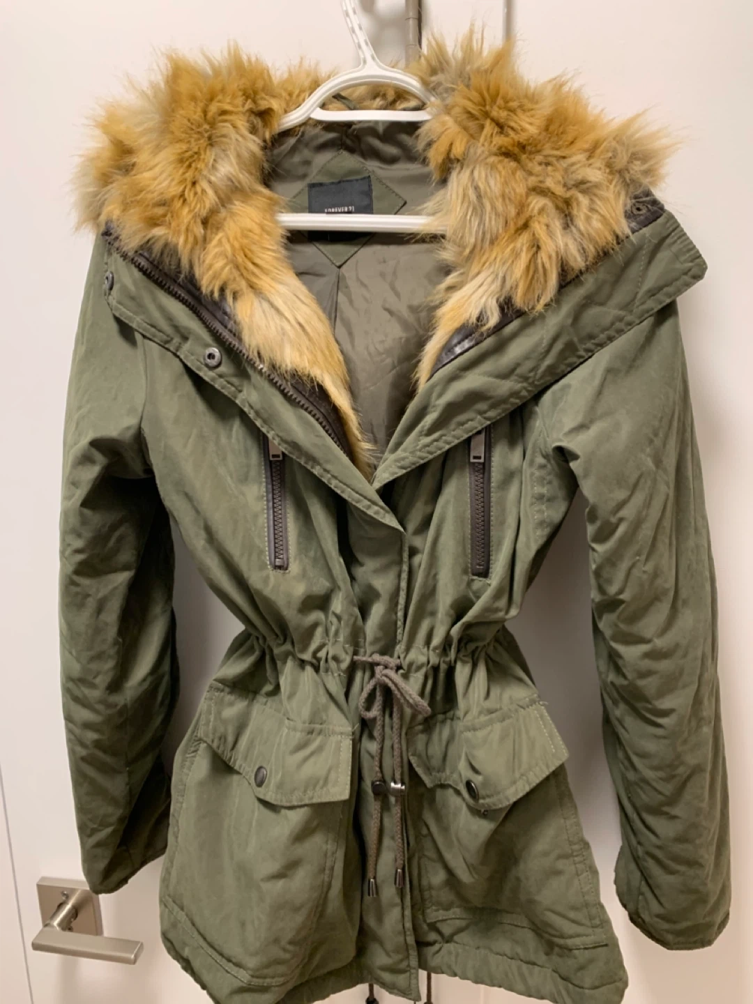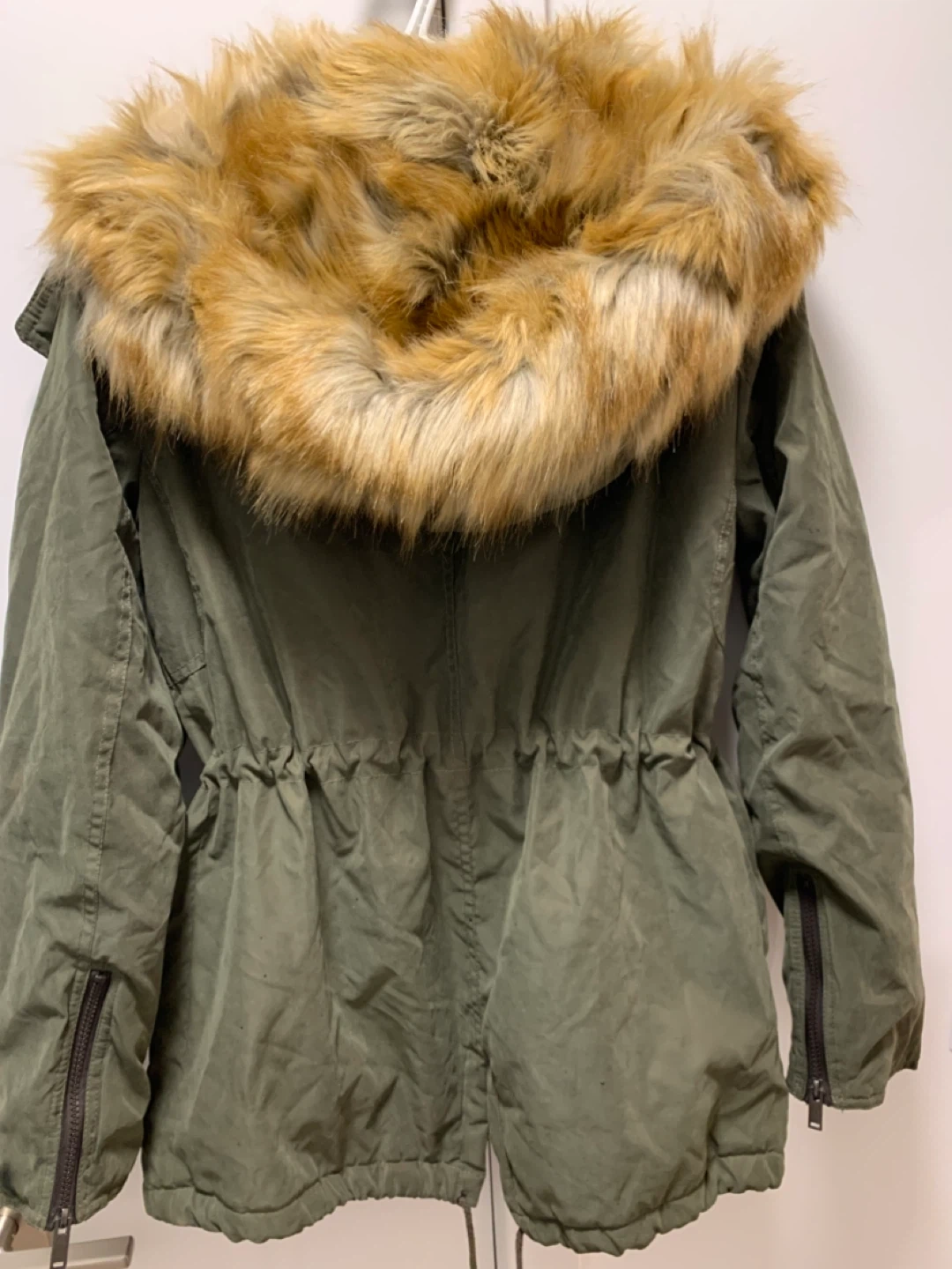 Cozy Forever 21 parka in a lovely green colour! It features a faux fur hood to keep you warm on chilly days. Perfect for adding a touch of style to your winter wardrobe!.