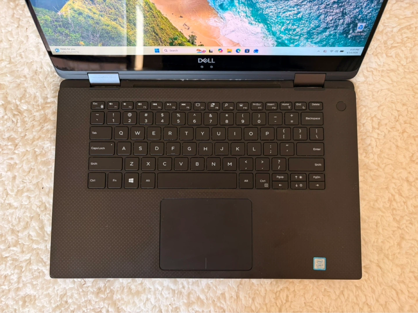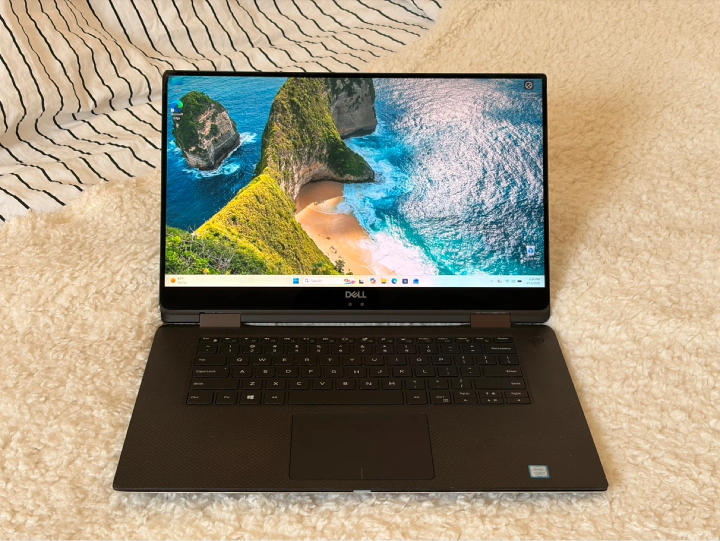 Dell XPS 15 laptop with a sleek design. It's a powerful machine ready for work or play. Includes touchscreen functionality.
