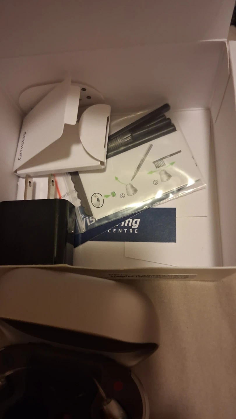 These are Phonak Audeo L-R/RT hearing aids. The set includes the hearing aids, charging case, user guide, and charging accessories. It's a complete set for hearing assistance.