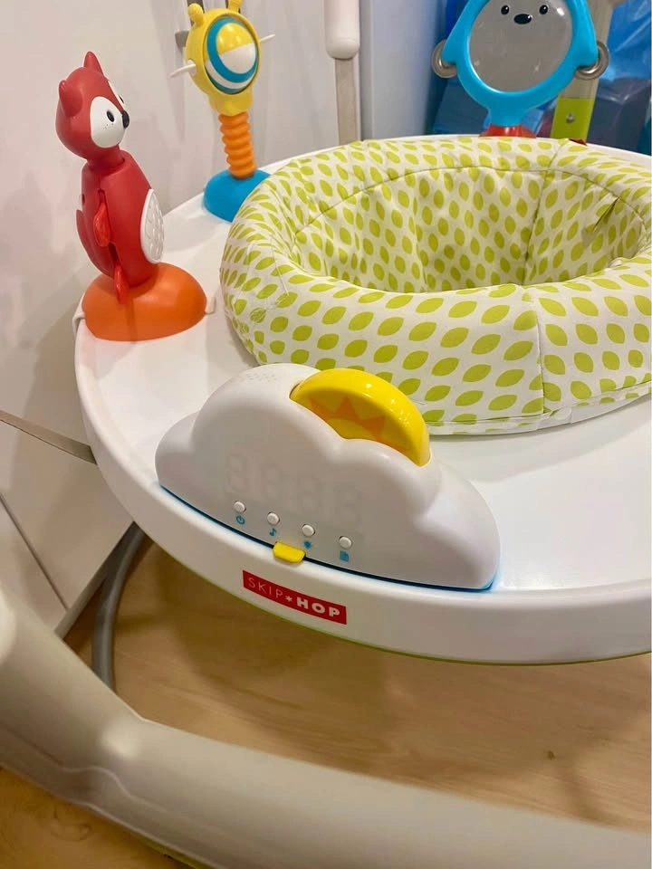 Features: It features a 360-degree rotating seat, 20+ developmental activities, and a light-up cloud bounce counter to track jumps.