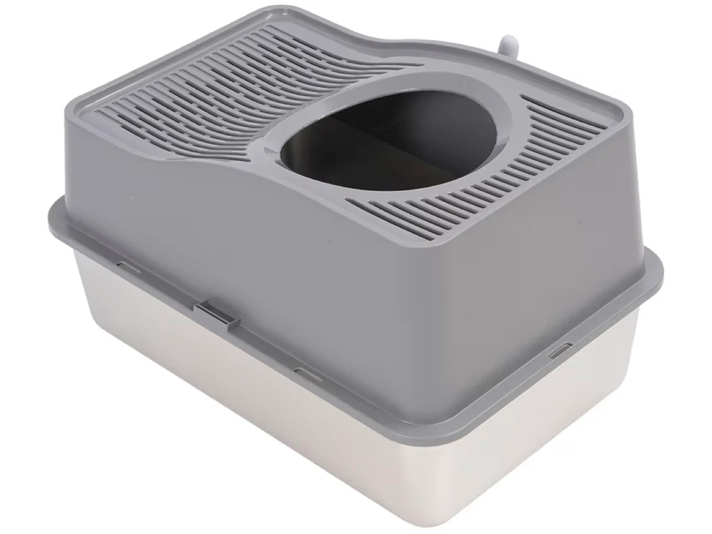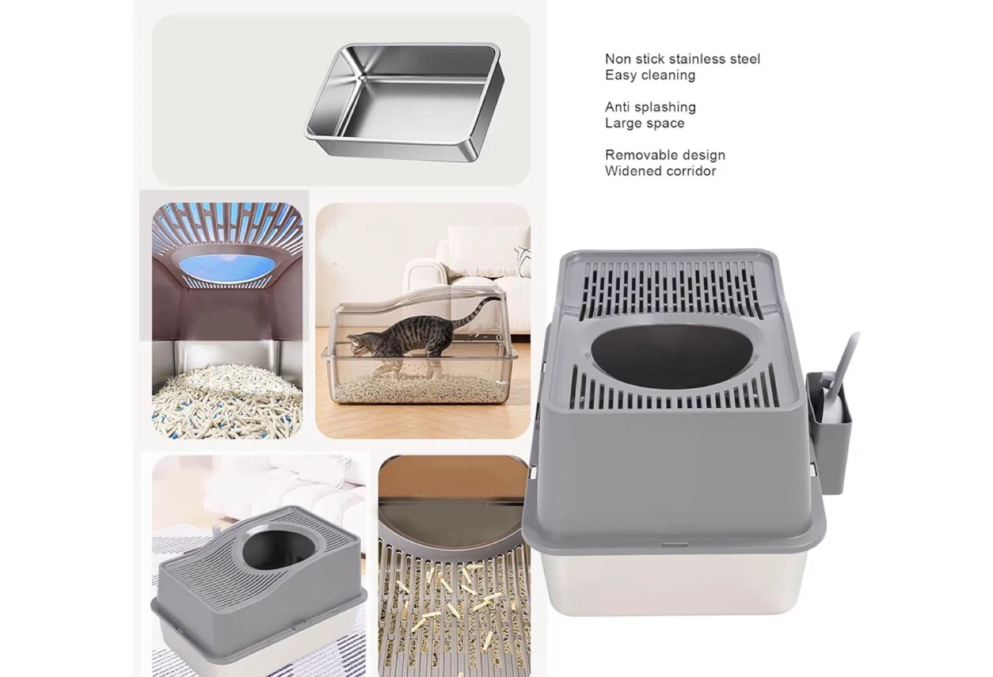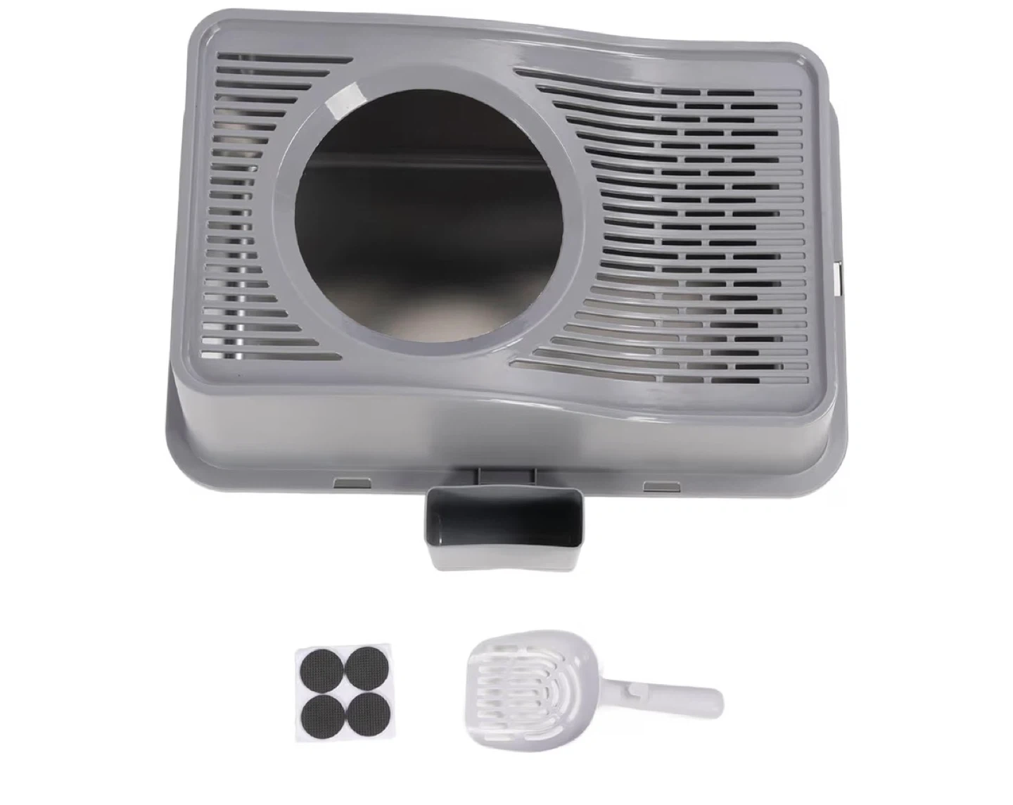 This enclosed litter box helps reduce litter scatter with its hooded design and top-entry opening. It's easy to clean and comes with a convenient scoop. The wide corridor design helps track less litter out of the box.