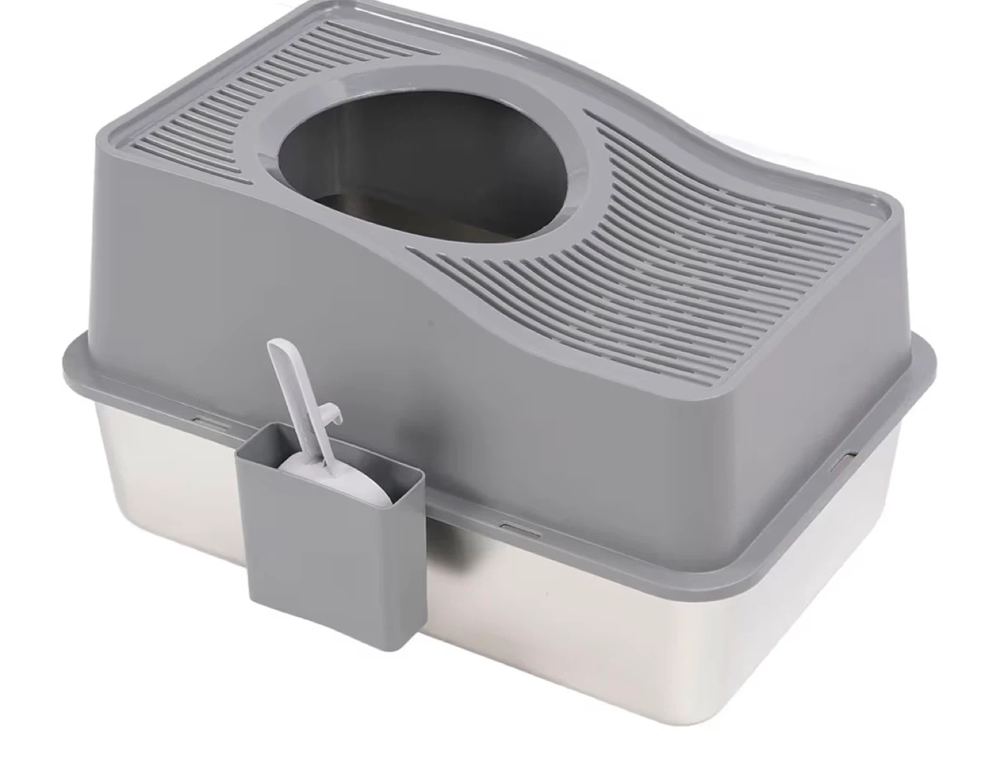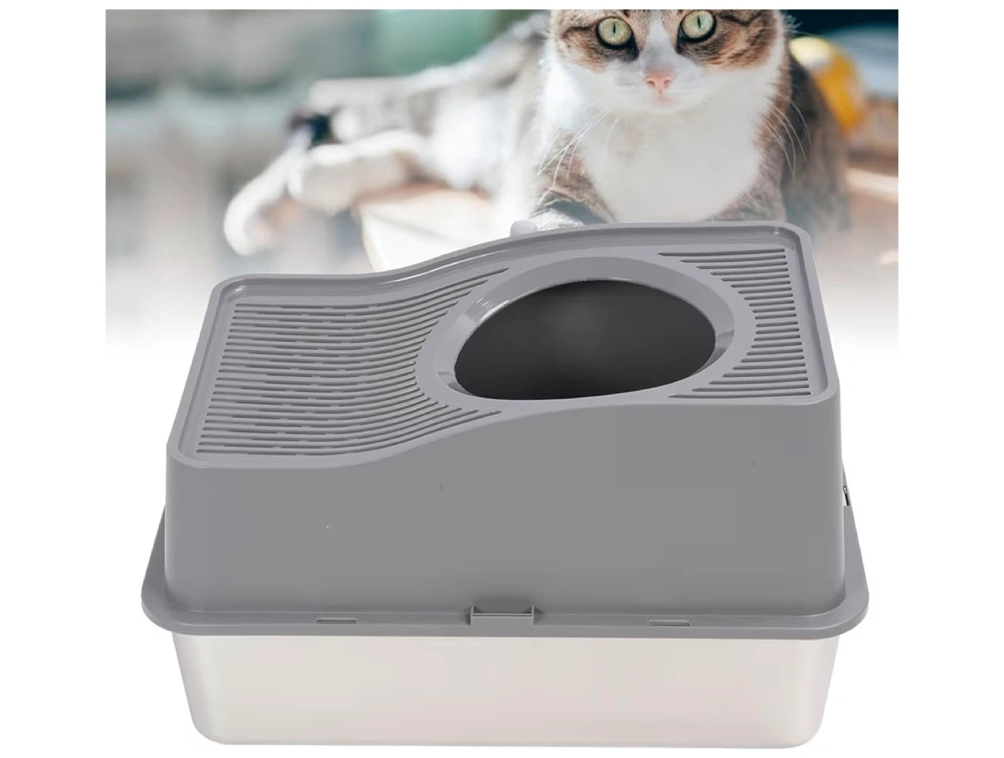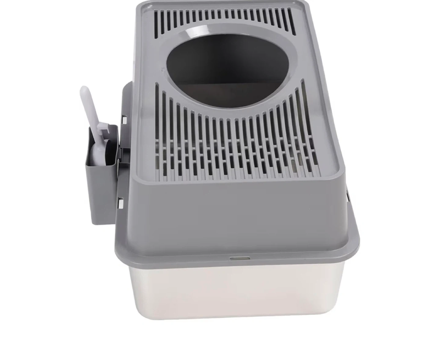 This enclosed litter box helps reduce litter scatter with its hooded design and top-entry opening. It's easy to clean and comes with a convenient scoop. The wide corridor design helps track less litter out of the box.