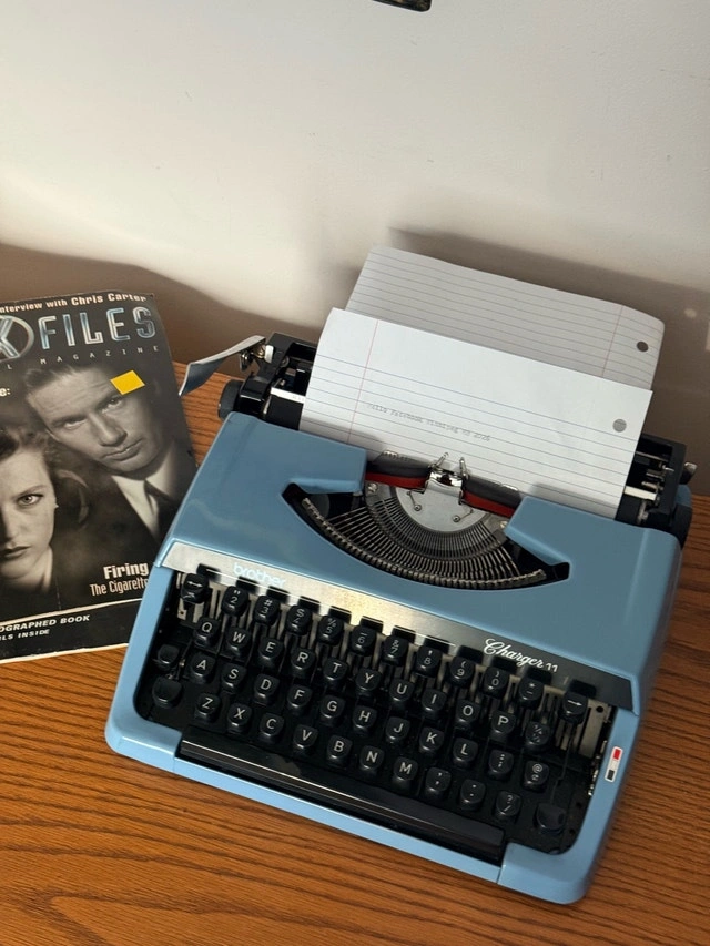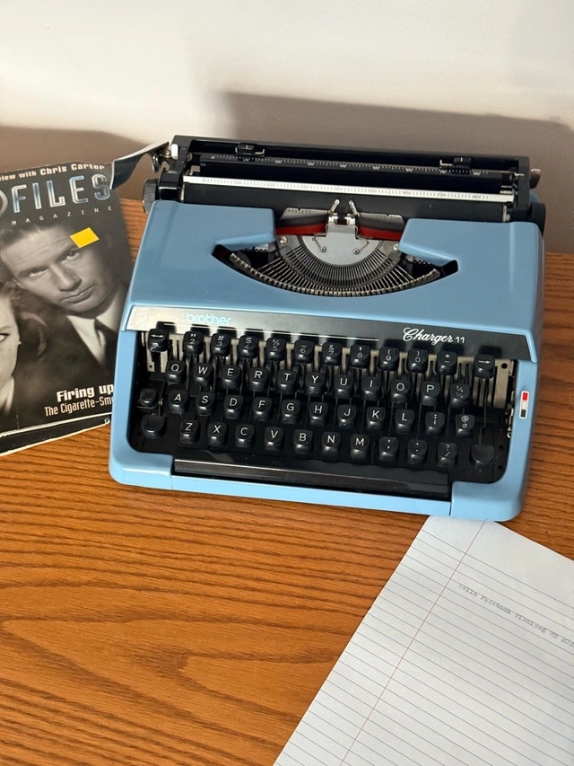 Classic Brother Charger 11 portable typewriter in good working condition. Smooth key action with a clean, readable typeface. A great piece for writers, collectors, or anyone who appreciates vintage office gear. All keys and functions work like new, includes new ink ribbon. Brand: Brother, Model: Charger 11, Portable manual typewriter, Clean keys, solid build, Ribbon installed.