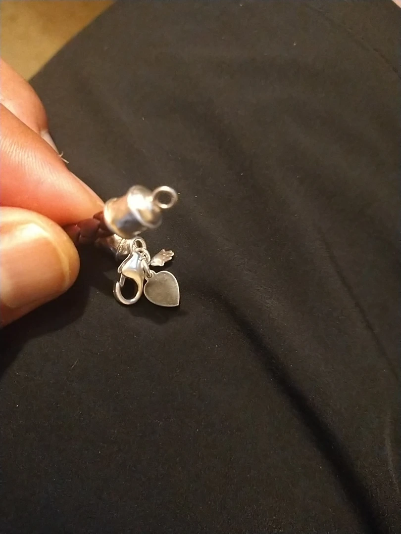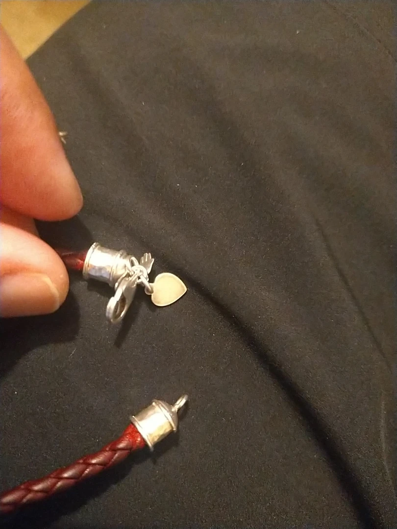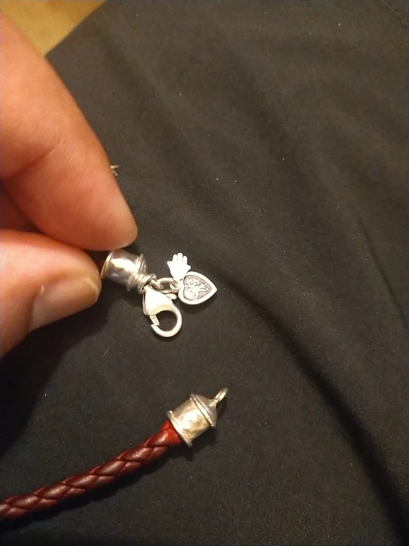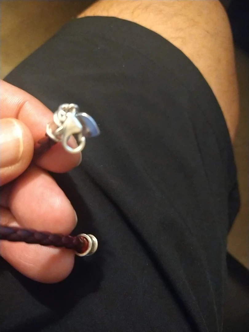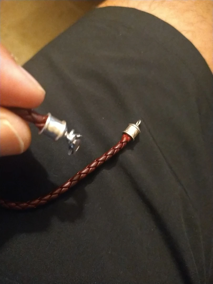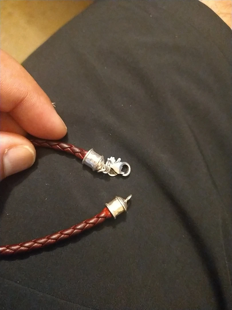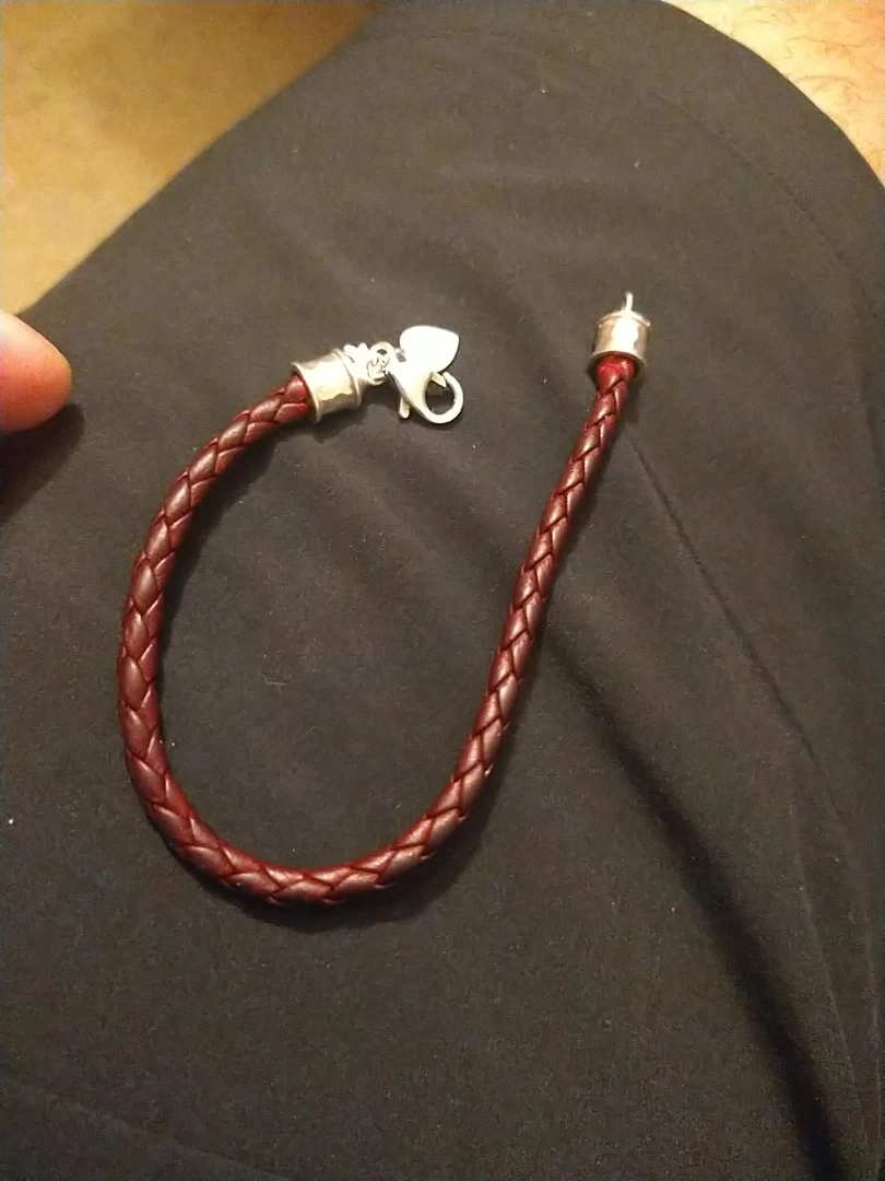 Here's a burgundy braided leather bracelet. It has a silver clasp and end caps. It looks to be in good condition!