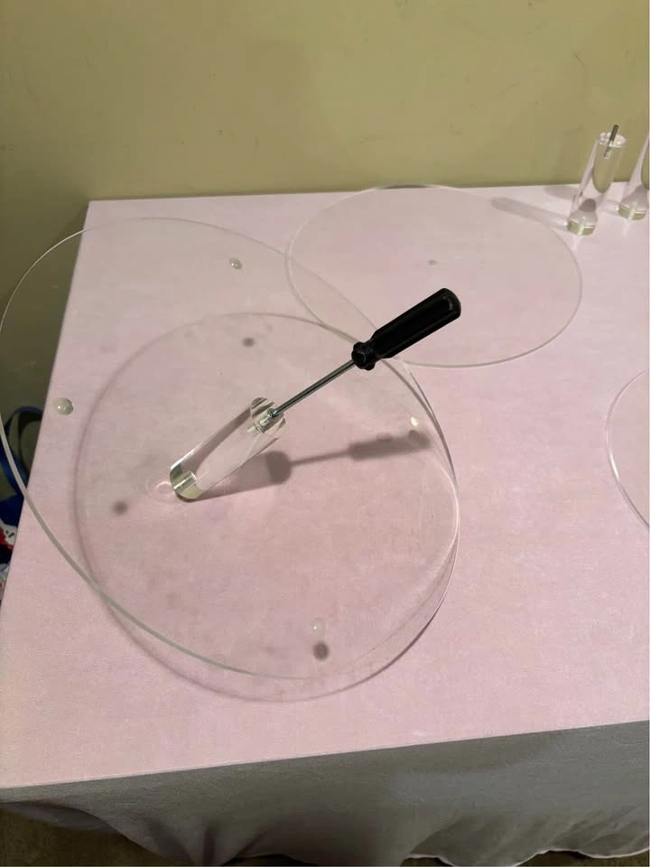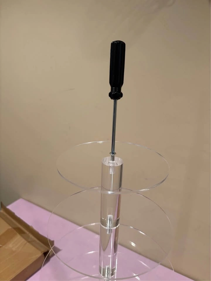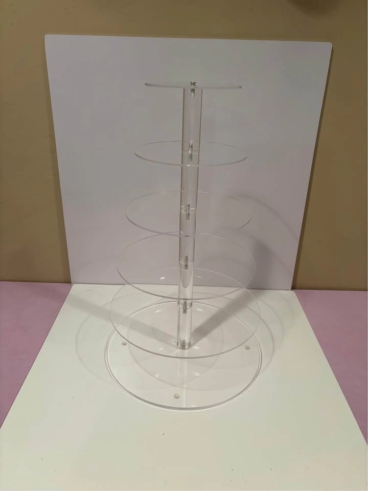 In box. Easy to assemble & breakdown for storage. Clear acrylic. Great for weddings, birthdays, or any party with cupcakes, tarts, cakes, fruit, sandwiches, etc. Pickup near Mavis Rd. & Dundas St.