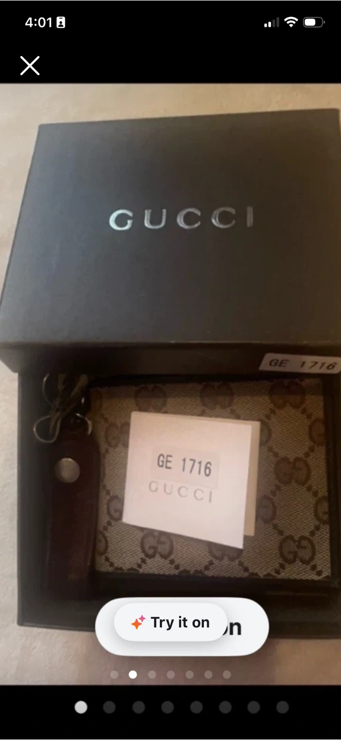 A black leather bi-fold wallet from Gucci. Made in Italy. It has multiple card slots.