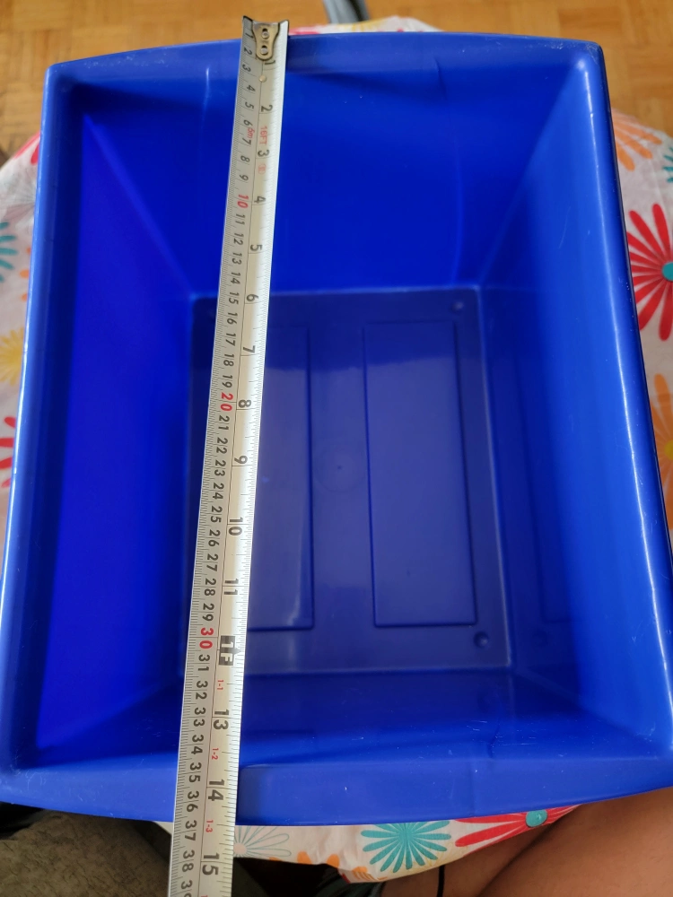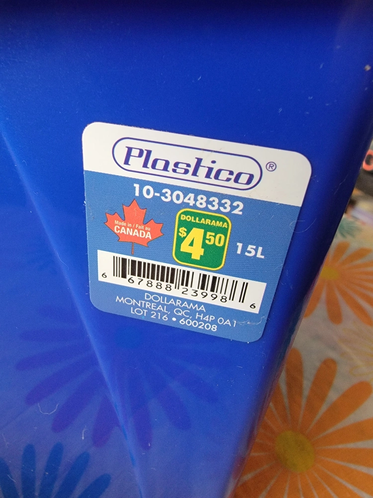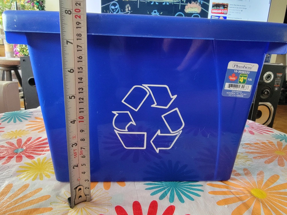 Selling a blue Plastico recycling bin! It's in great shape and ready to help you sort your recyclables. It holds 15L and measures approximately 8 inches tall, 14 inches deep, and 10 inches wide
