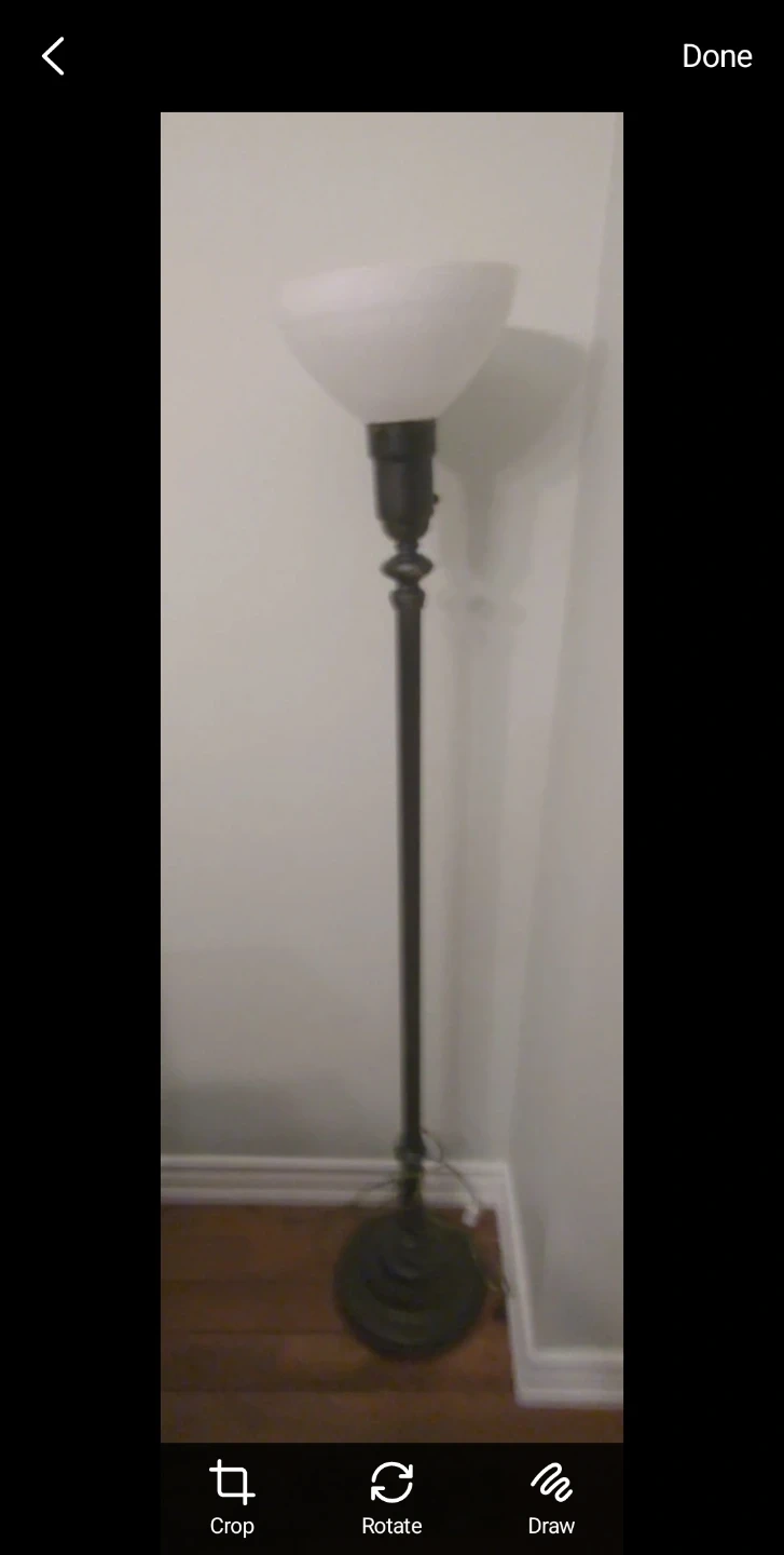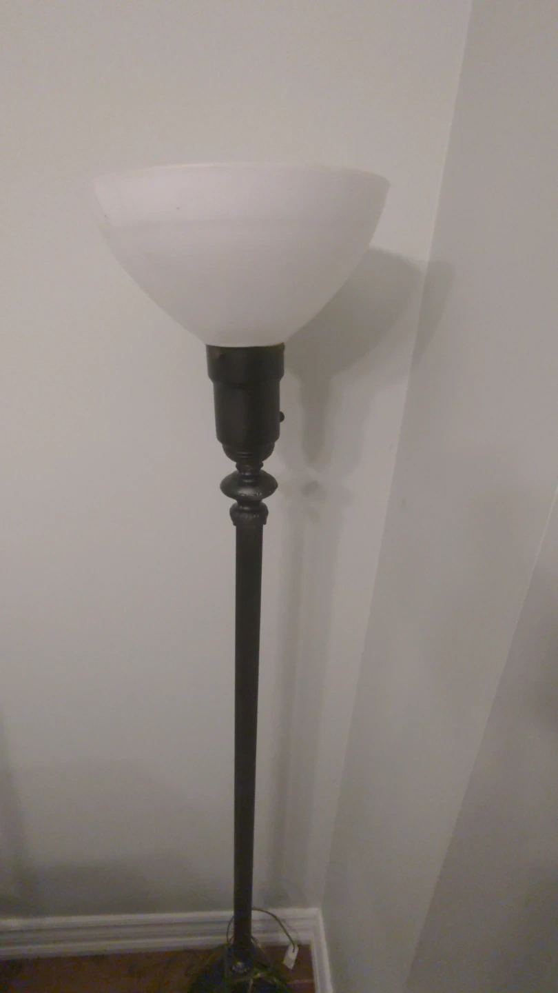 Selling a floor lamp with a classic design! It features a black finish on the base and a white shade that provides a soft, ambient light. It's in great condition and ready to brighten up your space