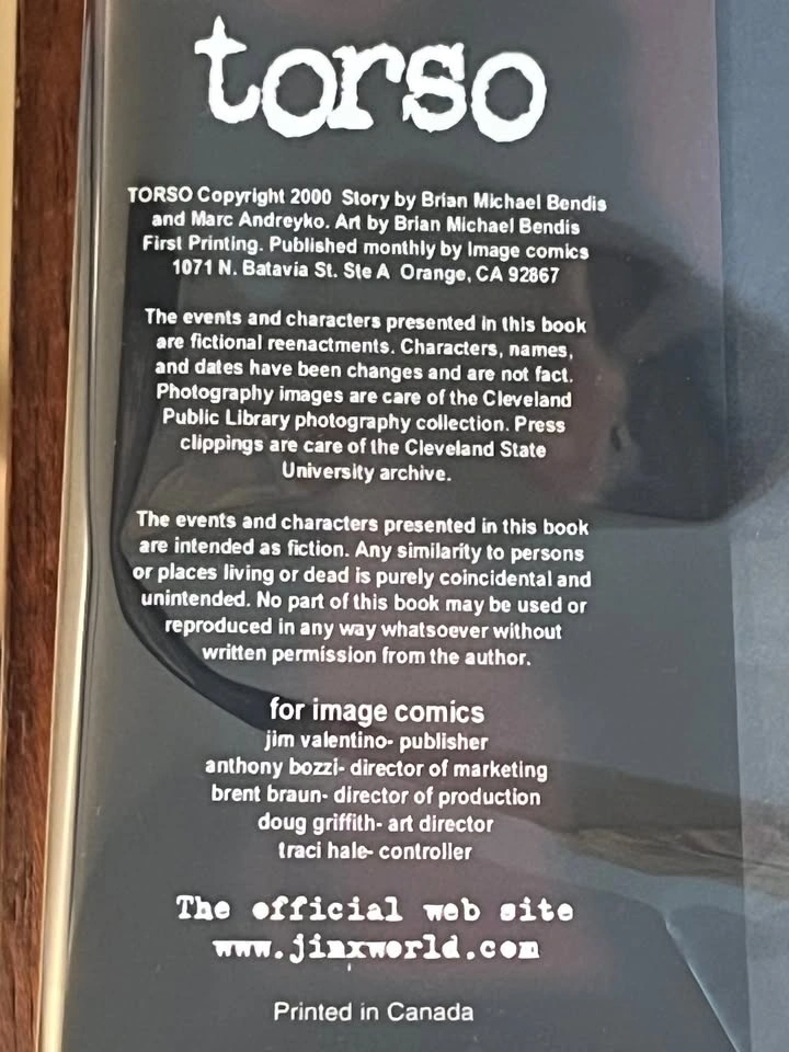 Brian Michael Bendis Graphic Novel, Torso. In great shape. Signed and numbered. I believe this is a first print. A great collectors item. Cash only. Pickup is in Etobicoke, near Queensway and Islington.