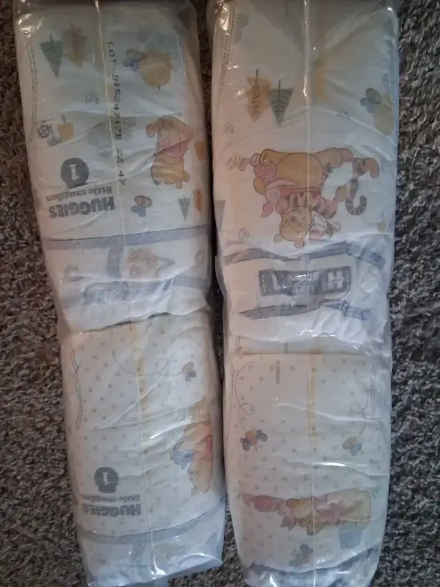 These are unopened packages of Huggies Little Snugglers, size 1 diapers, perfect for your little one's sensitive skin. I have 2 packs available. 10$ each pack.