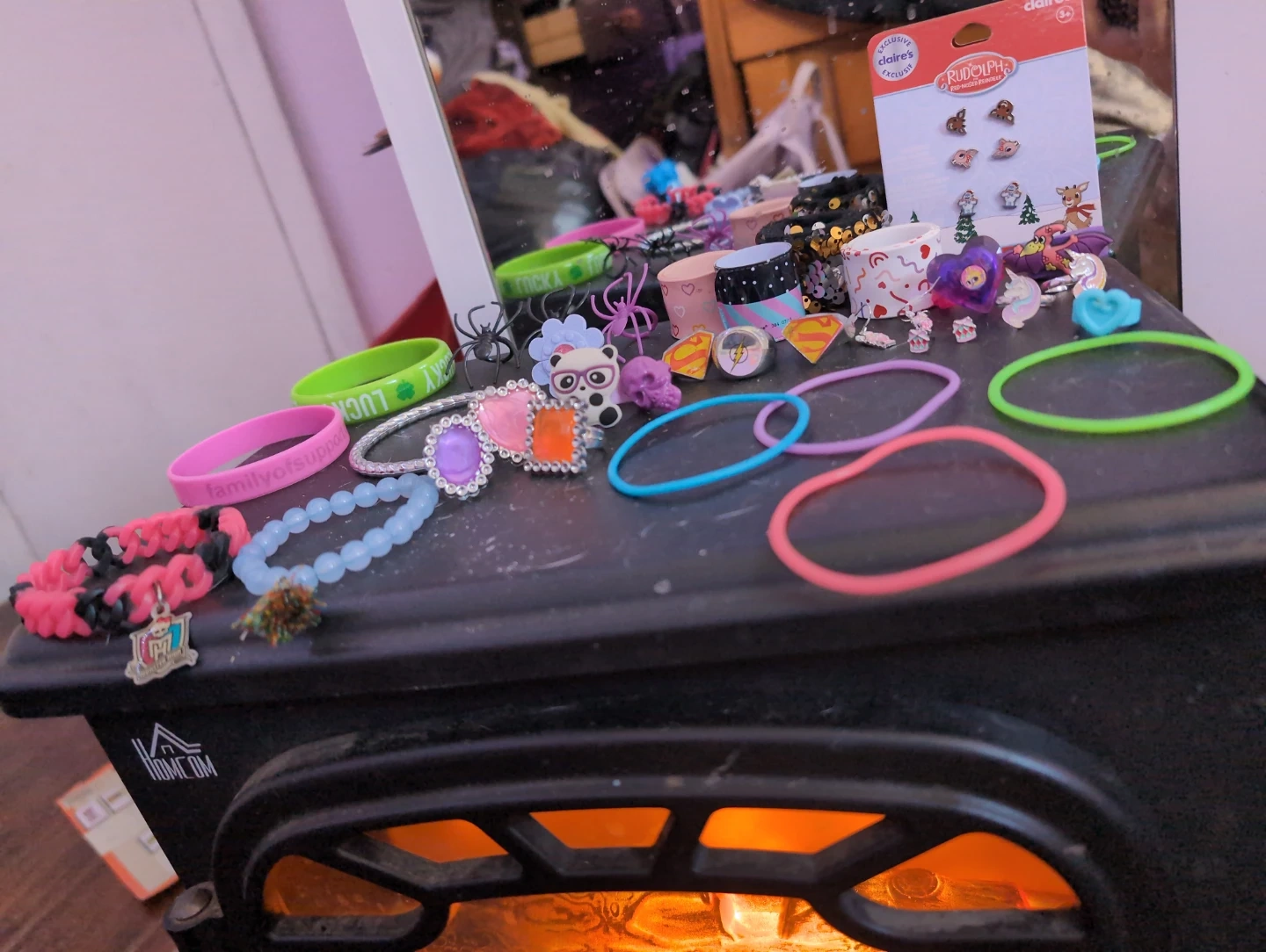 This set includes Rudolph and Friends themed earrings, bracelets, and rings. It also features stretchy hair bands and a sequined bracelet. Great for dress-up or party favours!