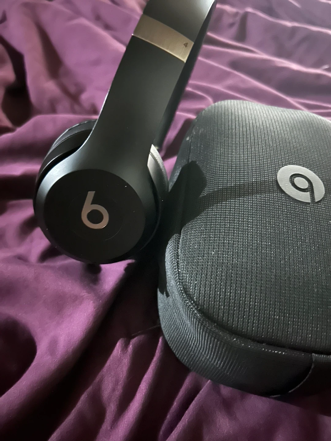 Beats Solo 4 wireless on-ear headphones in black. Comes with a protective carrying case. These headphones offer a comfortable fit and great sound quality. Come with charger barley used reason why dont want them because I bought apple pods like ear buds better . Located fort Saskatchewan