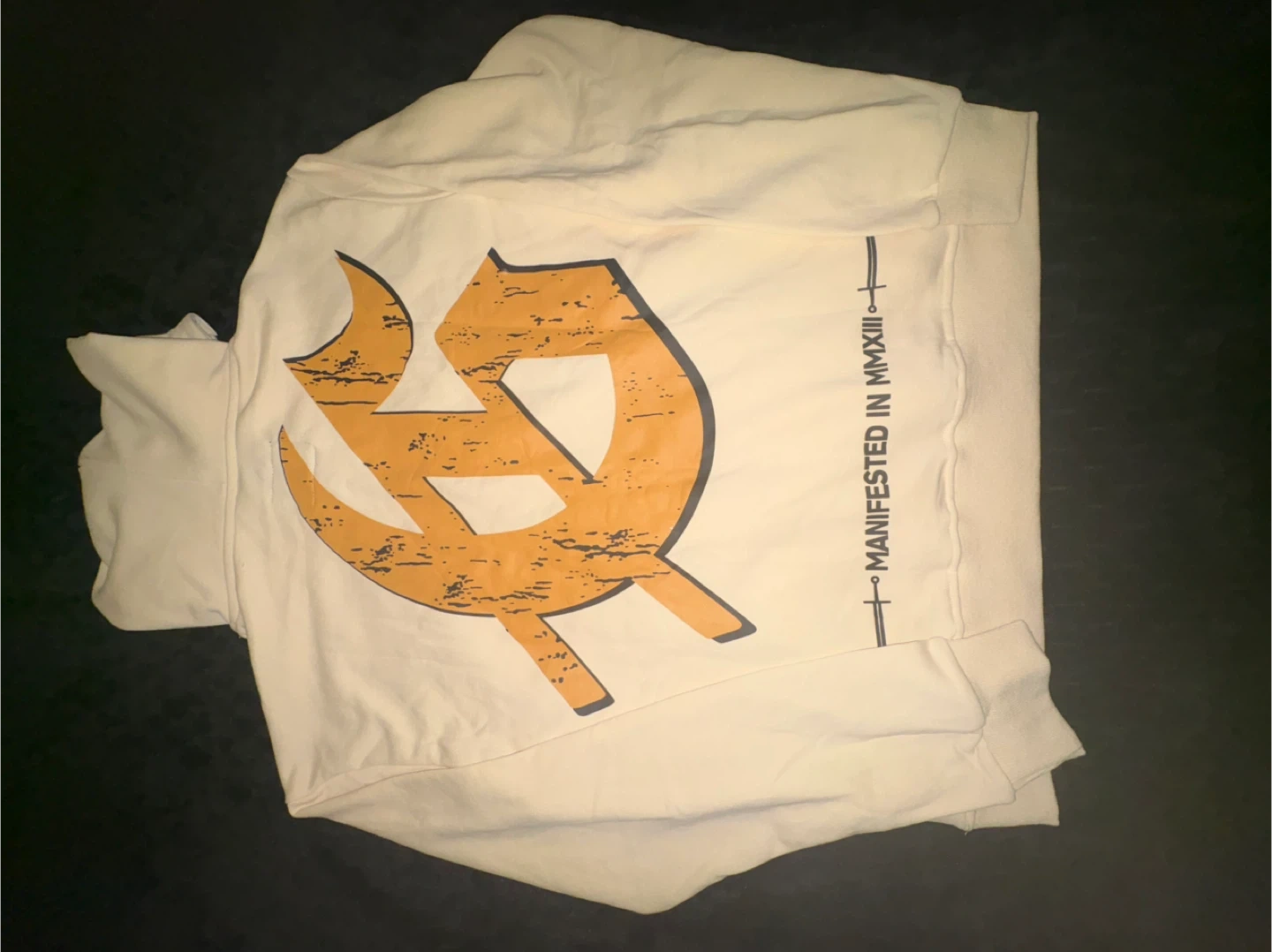 Godspeed hoodie with a unique design! The hoodie is a cream color and features a graphic of the Statue of Liberty on the front. It's a great way to add some style to your wardrobe