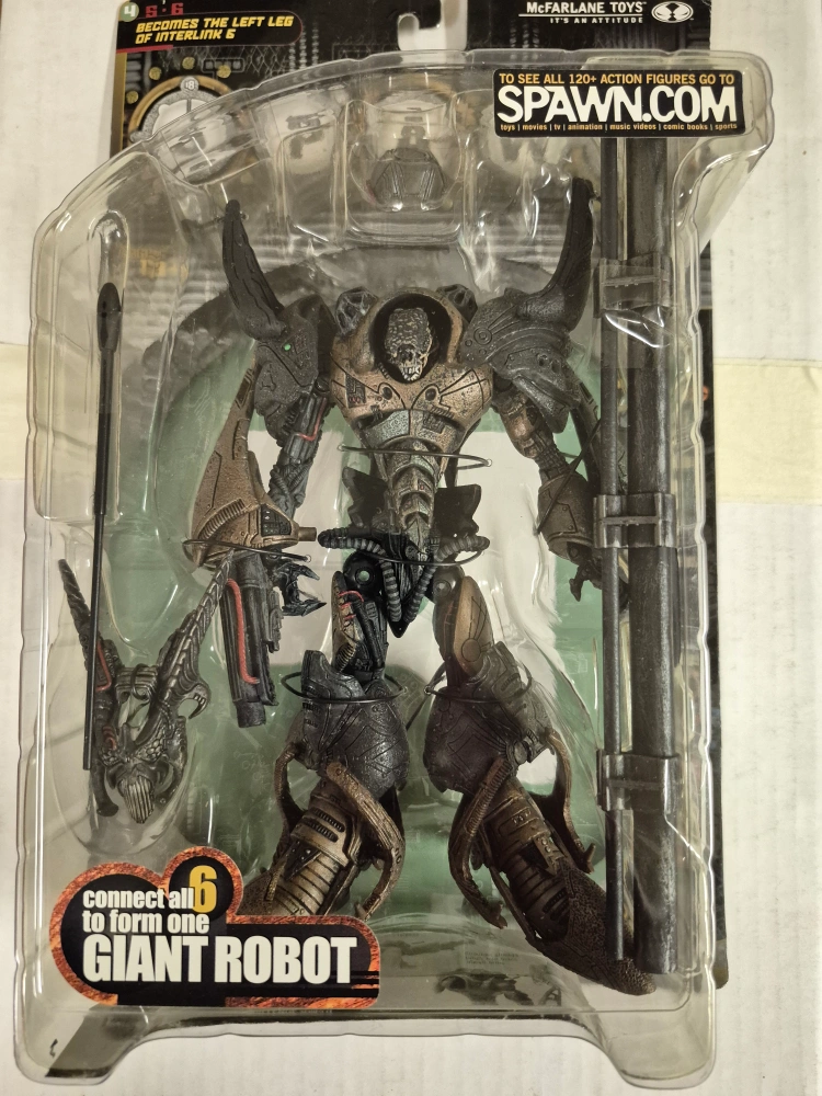 Spawn Interlink 6 action figure. Left leg of a giant robot. Collectible figure in package. Part of a larger buildable figure.