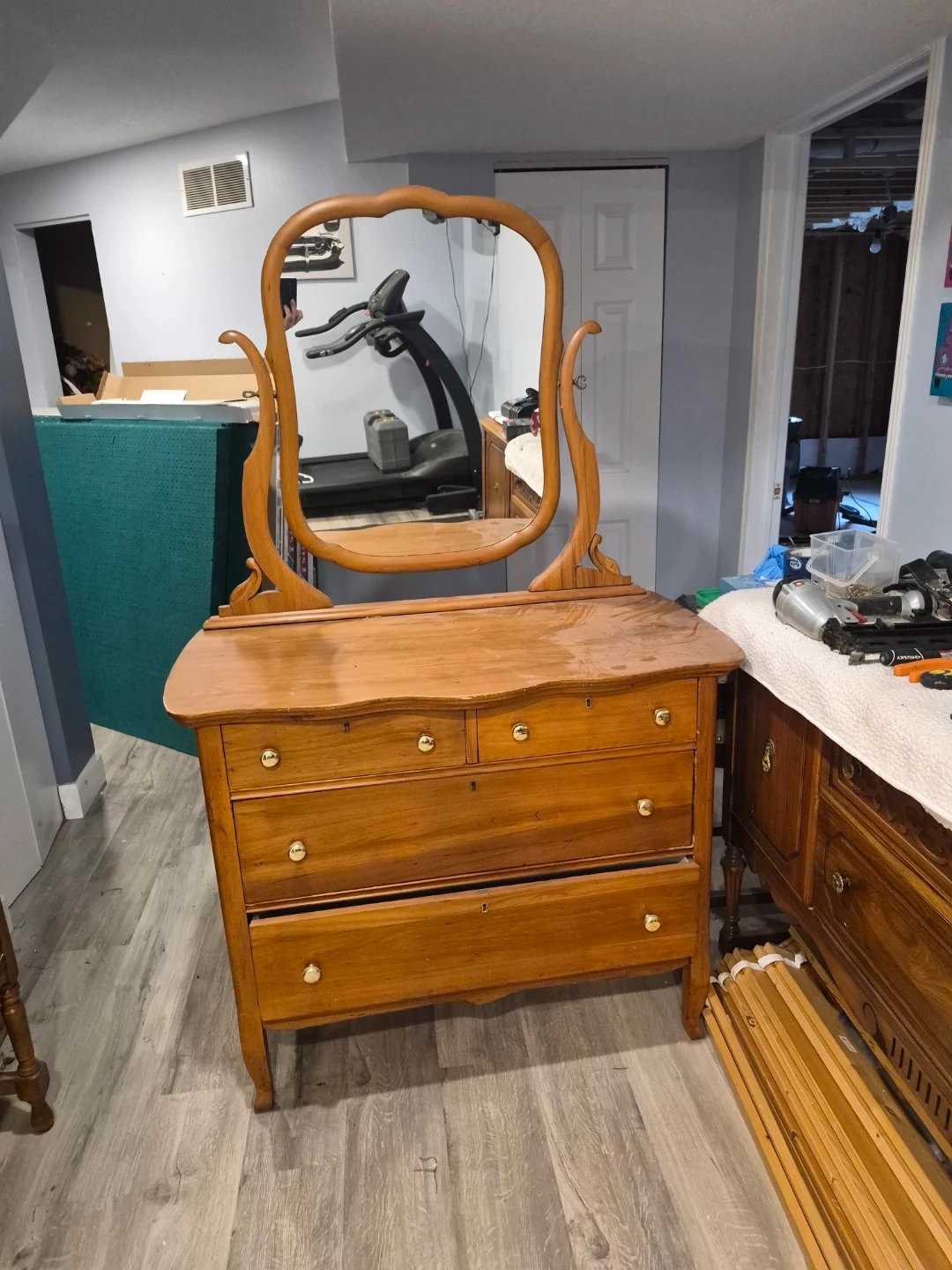 Vintage Solid Wood Dresser with Mirror – Antique Style – $250