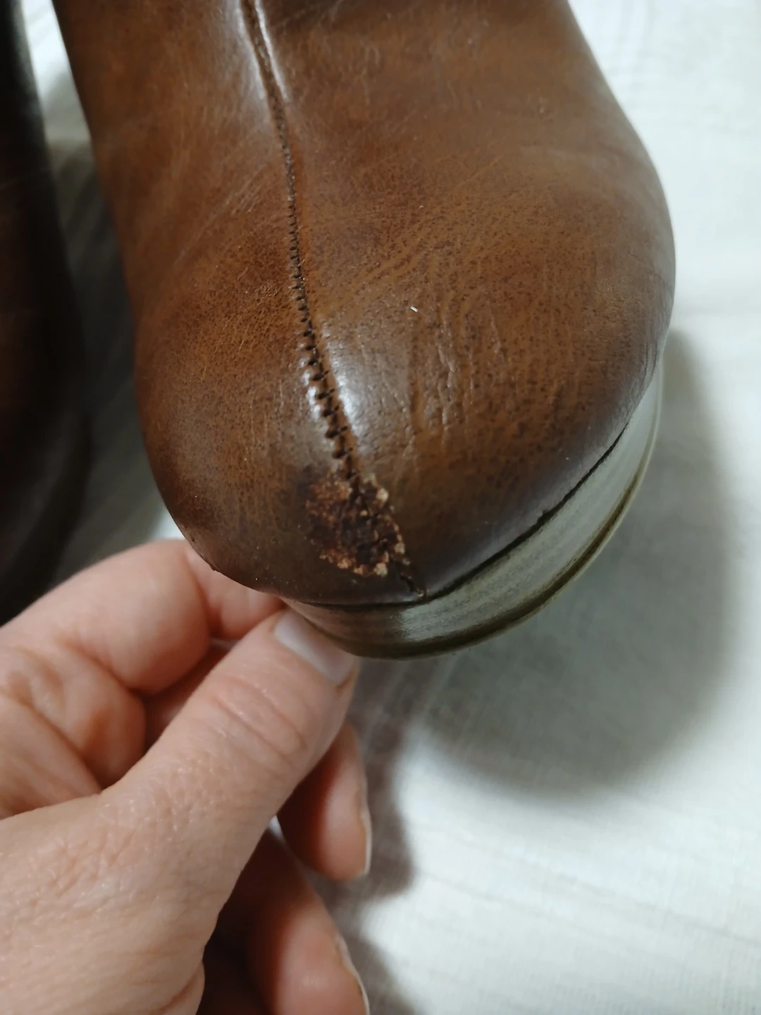 They have one visible scuff at the front of one boot which has been filled in with shoe marker..otherwise they have been well taken care of and look great