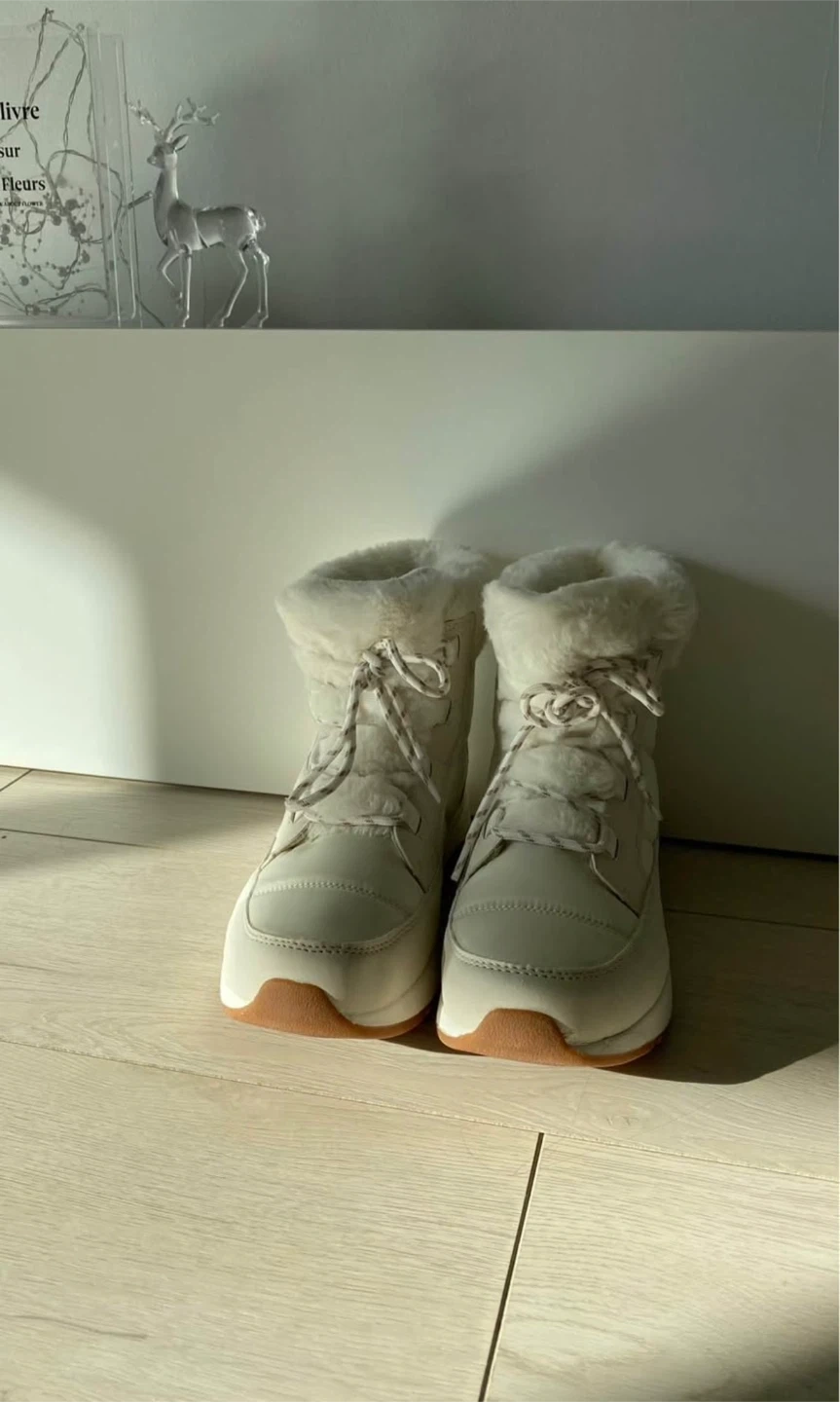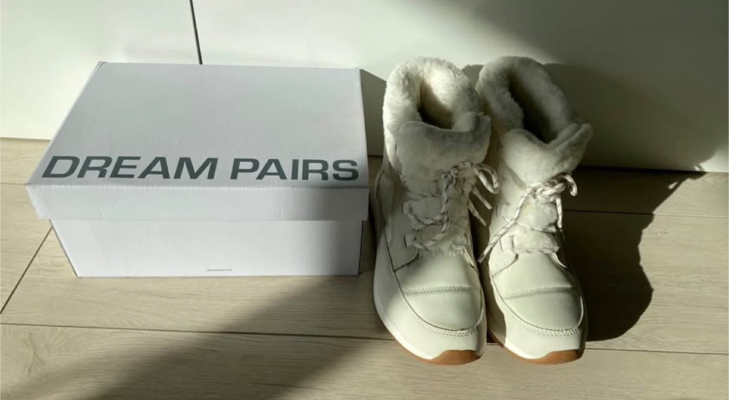 Original price is $70 before tax!! These Dream Pairs winter boots are a creamy white colour with faux fur lining. They include the original box and are 8-8.5 size .They're perfect for keeping your feet warm in colder weather! Tried them once, missed the return window . Perfect condition!