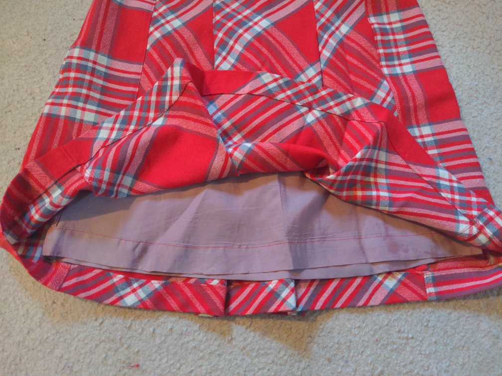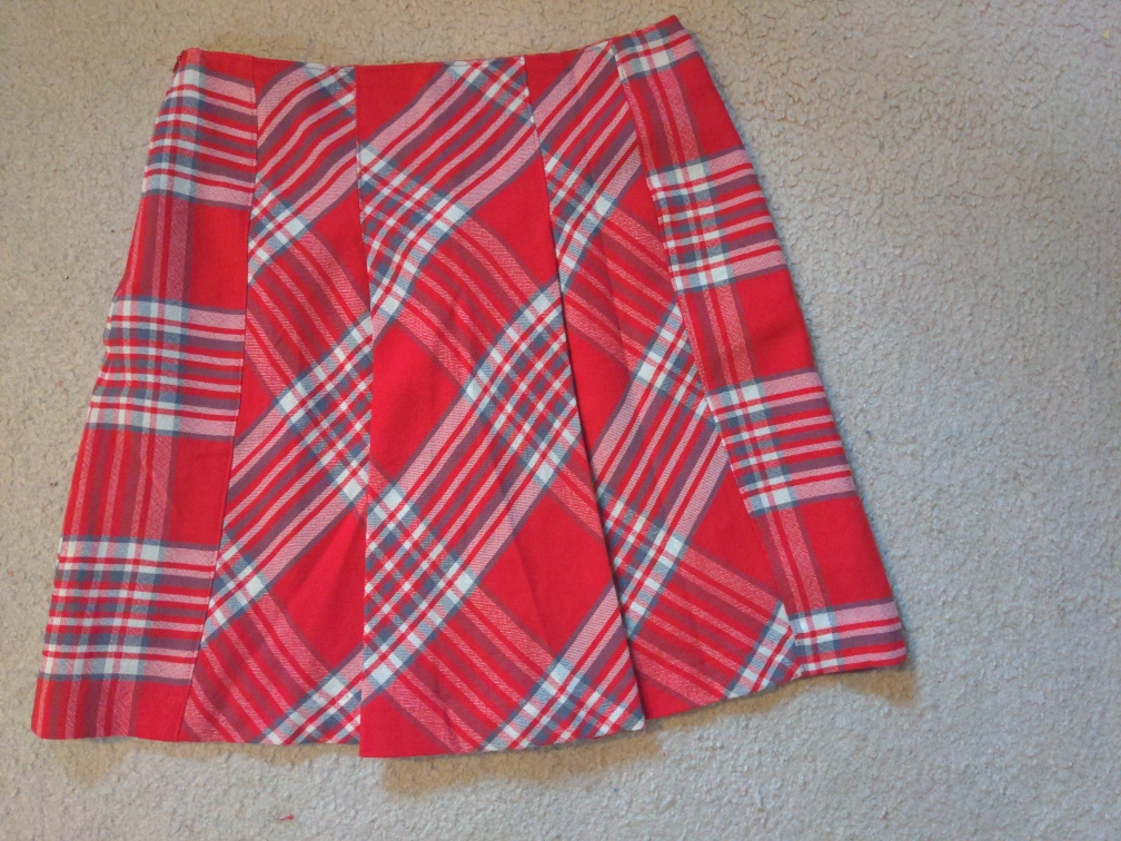 Red and White Plaid Wool Mini Skirt